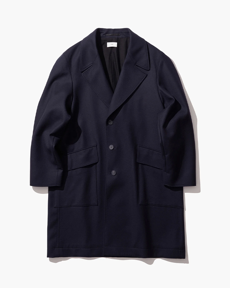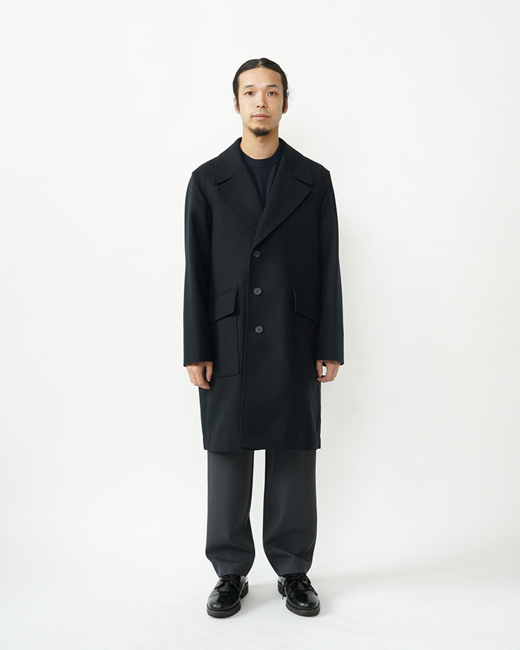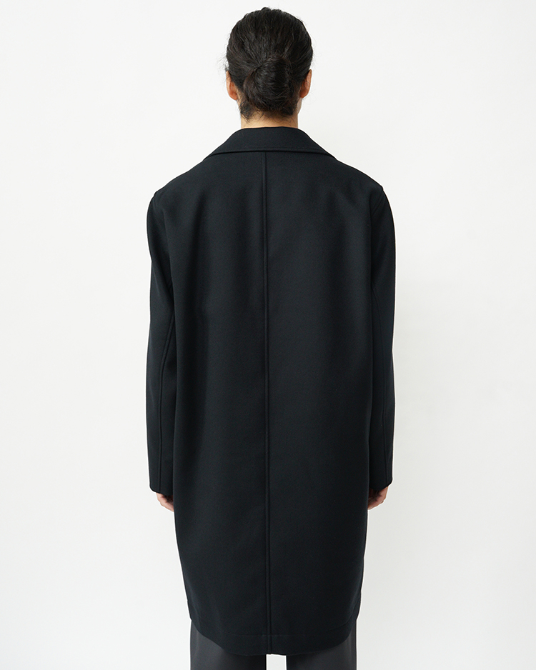 ややゆったりとしたAラインシルエットが特徴のセミダブルコート。身頃には肉厚のコットン裏地を、袖裏にはキュプラ裏地を使用しています。