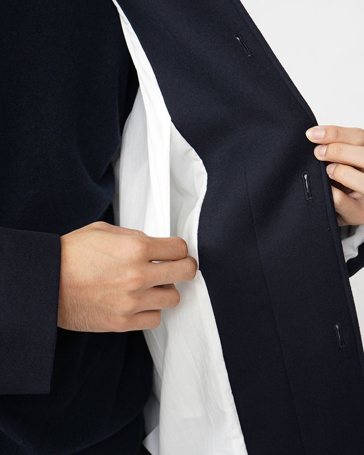 - SUPER 160S DOUBLE SAXONY BALMACAAN COAT / NAVY