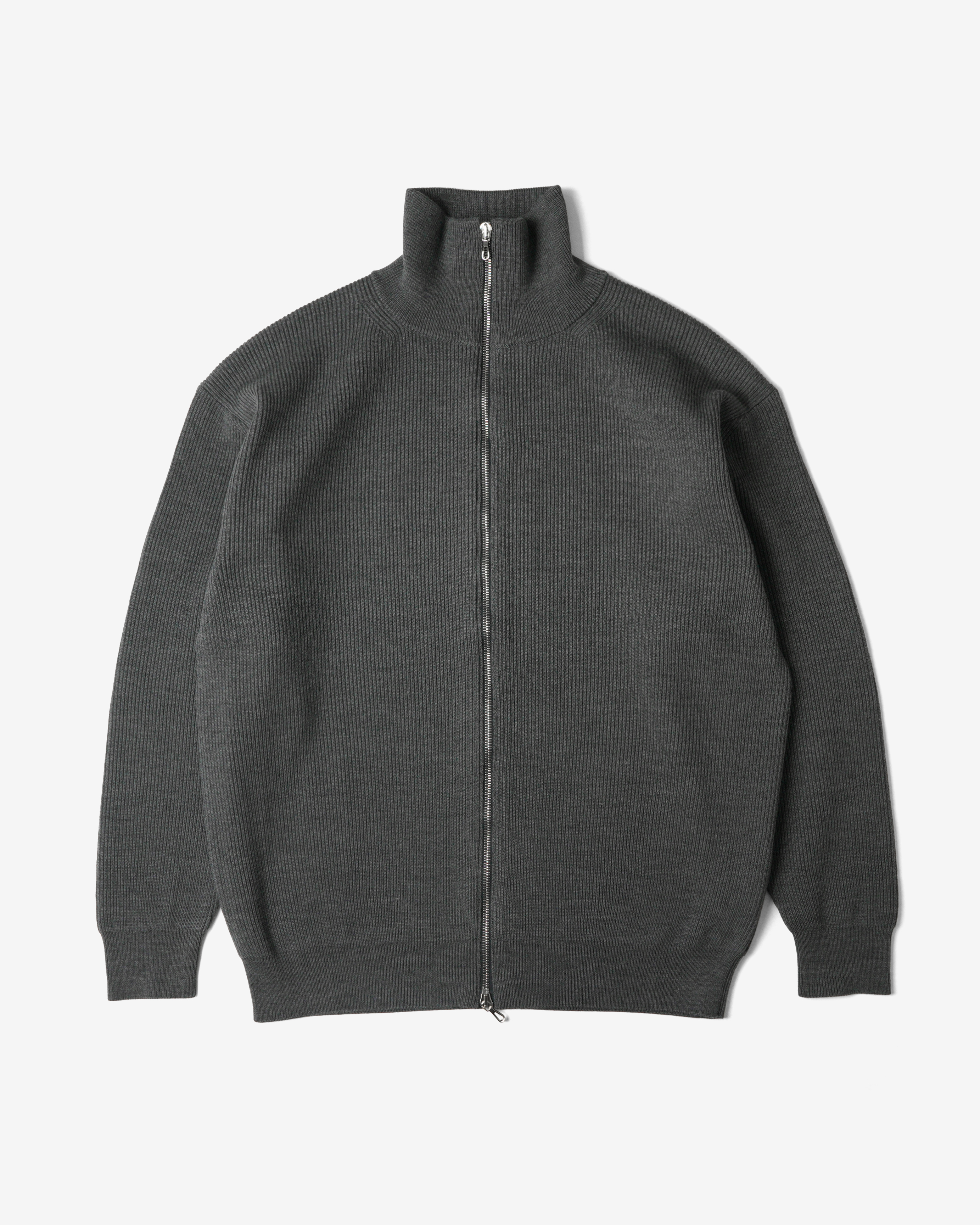 シンプルながらもしっかりと立ち上がった編み目が印象的な、ダブルジップのドライバーズニットベスト。レイヤリングに最適で着こなしの幅を広げてくれる一着。非常に細かく上質で艶のあるメリノウールを使用し、限界まで度詰めで編み立てることで、適度なボリュームと美しい表情を兼ね備えた一着。