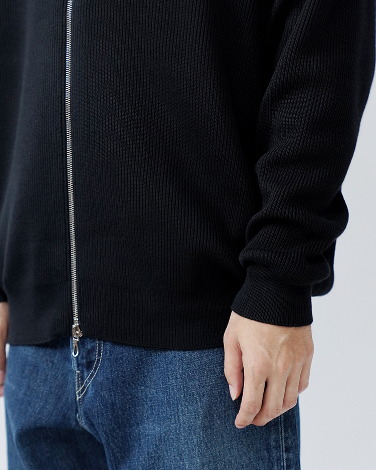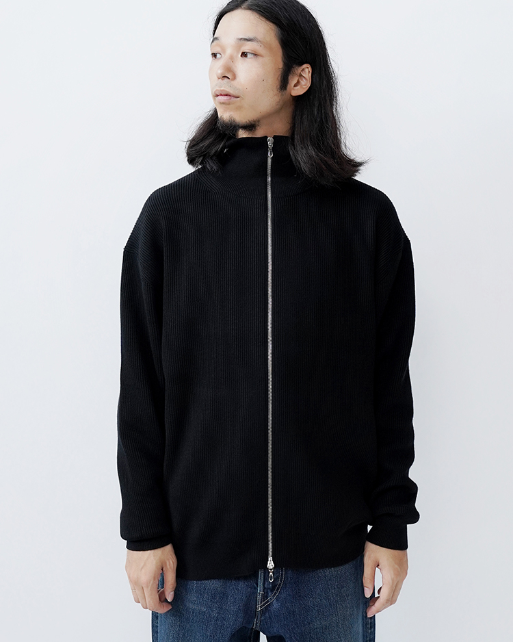 シンプルながらもしっかりと立ち上がった編み目が印象的な、ダブルジップのドライバーズニットベスト。レイヤリングに最適で着こなしの幅を広げてくれる一着。非常に細かく上質で艶のあるメリノウールを使用し、限界まで度詰めで編み立てることで、適度なボリュームと美しい表情を兼ね備えた一着。