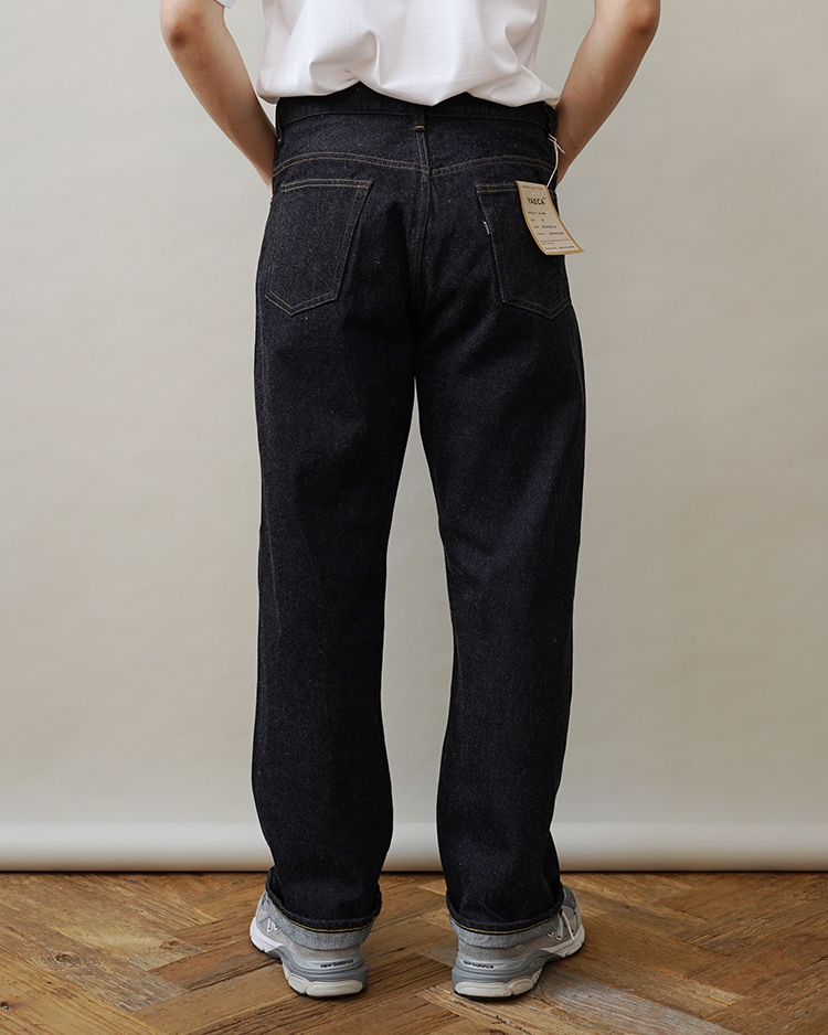 また、生地に毛羽があるとこや、サイドシームのねじれも特徴です。フロントはボタンフライ仕様になります。