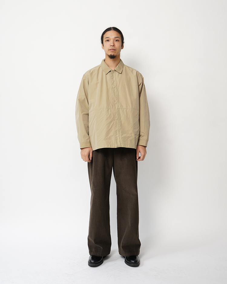 中に着込んでもストレスなく過ごせるよう、ゆったりとゆとりのある身幅に、すっきりとした短めの丈。ウールなど保温性の高い服とレイヤリングすることで、軽くてあたたかい装いになります。