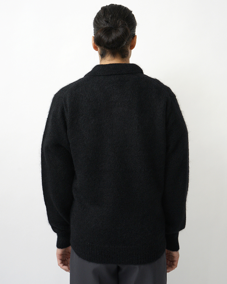 純粋なモヘヤの風合いを最大限に引き出すため、特別な紡績方法で糸を作り、時間をかけて丁寧に編み立てました。モヘヤならではのなめらかな肌ざわり、柔らかな起毛感が特徴の商品。ゲージを7から5.5に調整し、モヘヤのふんわりとした質感をより感じられる仕上がりに。