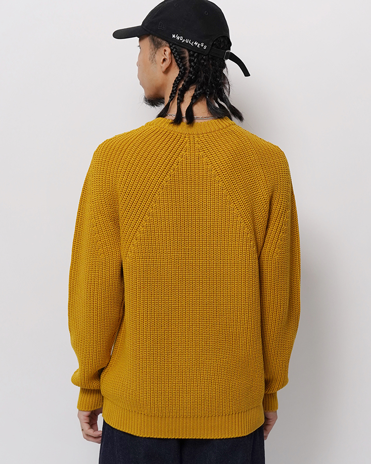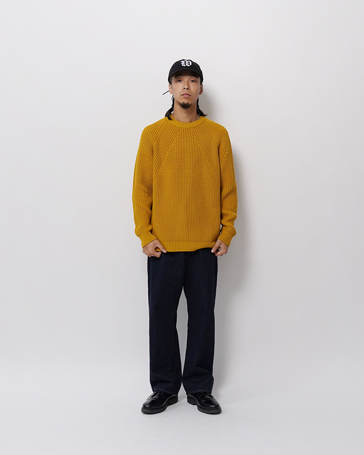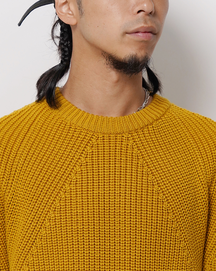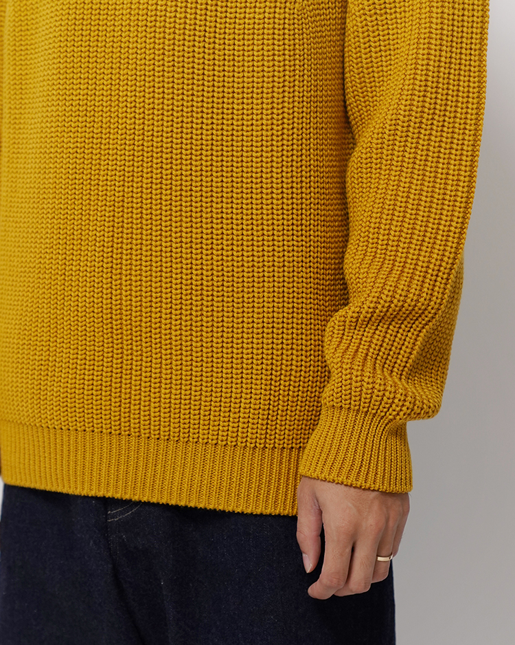 SOLID WOOLという独自に開発した糸を使用し、キレイな編目・ダレない強度・毛玉ができにくい・チクチクしないという理想のミドルゲージニットを目指した商品となっております。