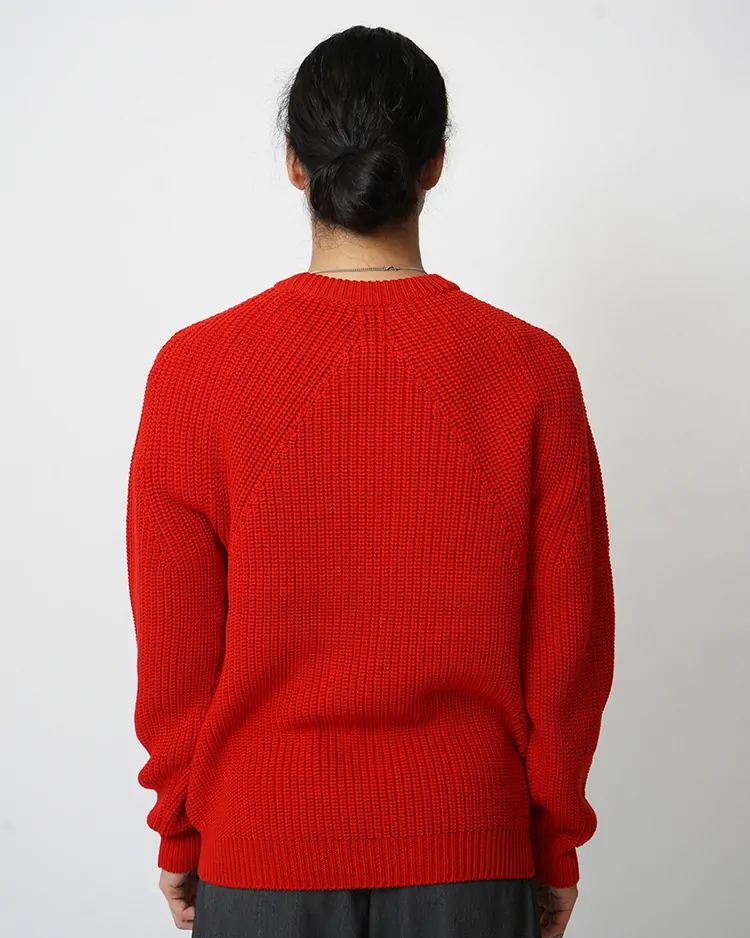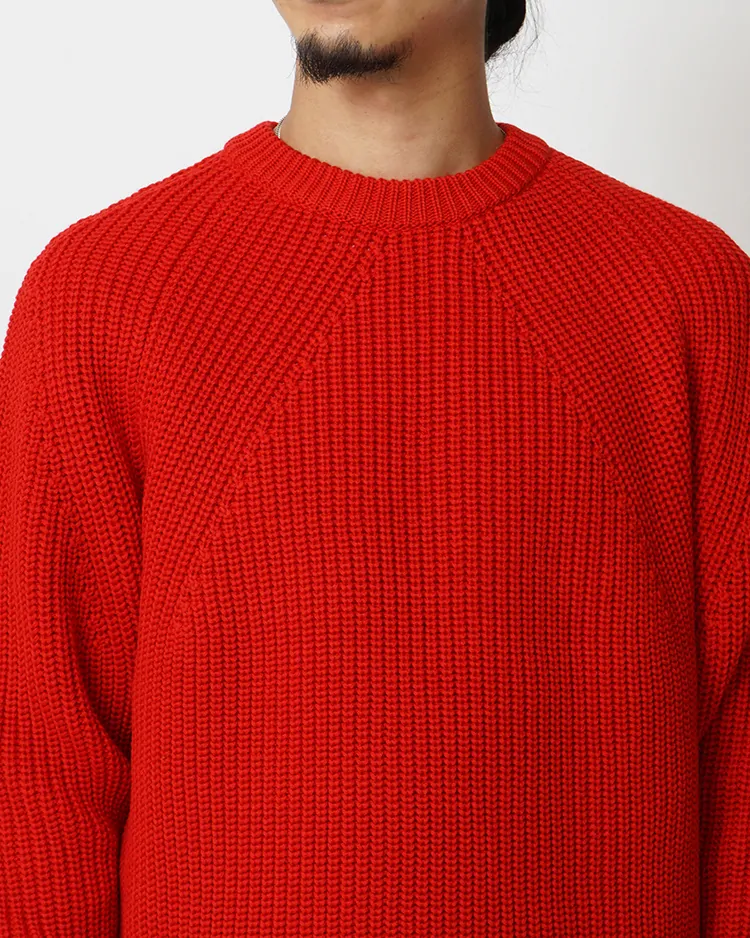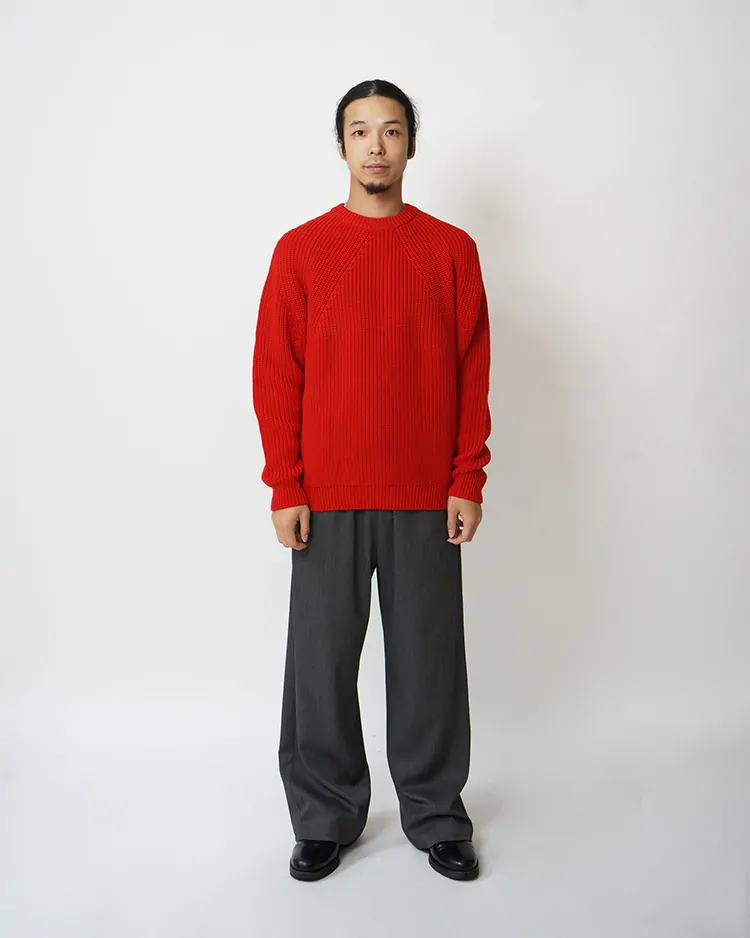 SOLID WOOLという独自に開発した糸を使用し、キレイな編目・ダレない強度・毛玉ができにくい・チクチクしないという理想のミドルゲージニットを目指しました。