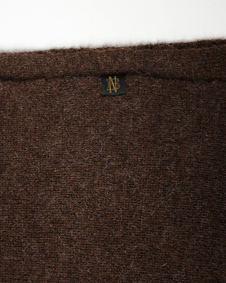 柔らかな風合いを持つファインアルパカに、メリノウールを芯にした起毛糸を多本取りし、ローゲージで編み立て。糸そのものが持つ膨らみにより独特の立体感が特徴の商品。ファインアルパカならではの軽やかな着用感に加え、高い保温性のある商品。