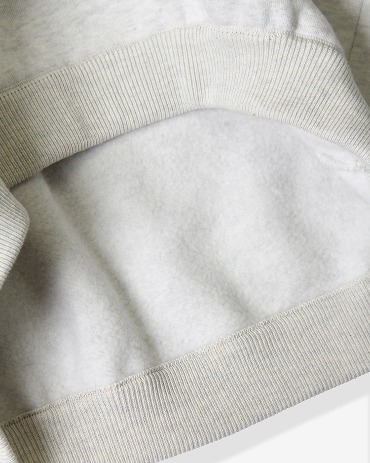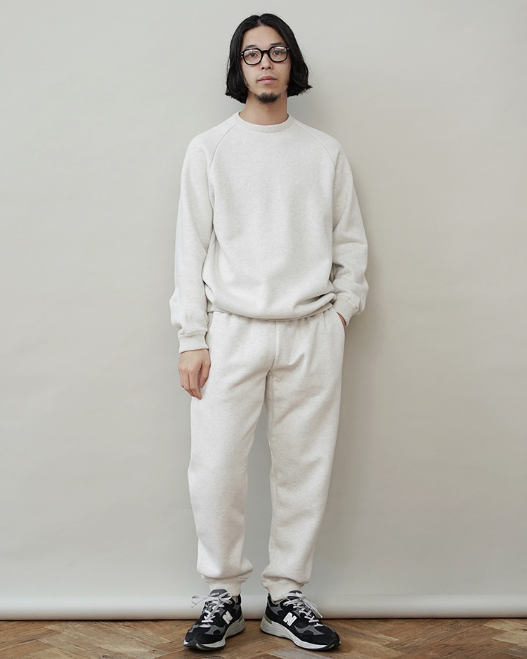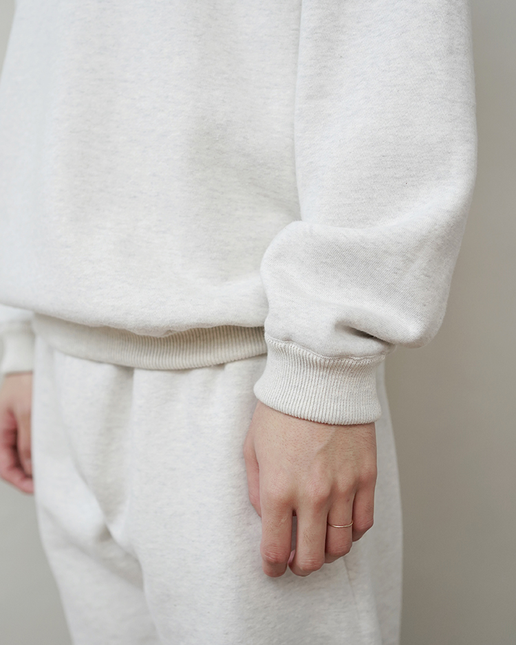 丁寧にゆっくりと織られたスウェット生地は、柔らかな着心地と暖かな肌触りが特徴です。リブと本体部の縫製は、生地の編み目と編み目を手作業で編み込む等、細部にまでこだわり抜いたアイテムです。
