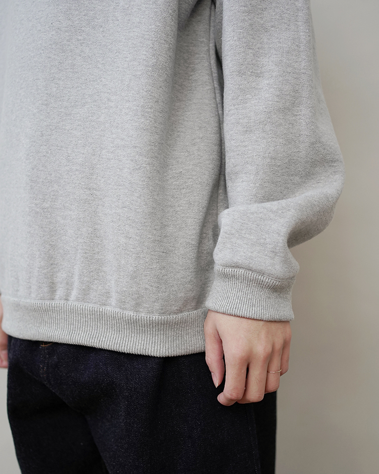 丁寧にゆっくりと織られたスウェット生地は、柔らかな着心地と暖かな肌触りが特徴です。リブと本体部の縫製は、生地の編み目と編み目を手作業で編み込む等、細部にまでこだわり抜いたアイテムです。