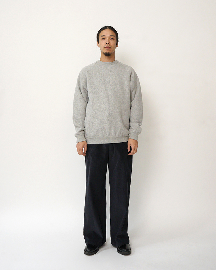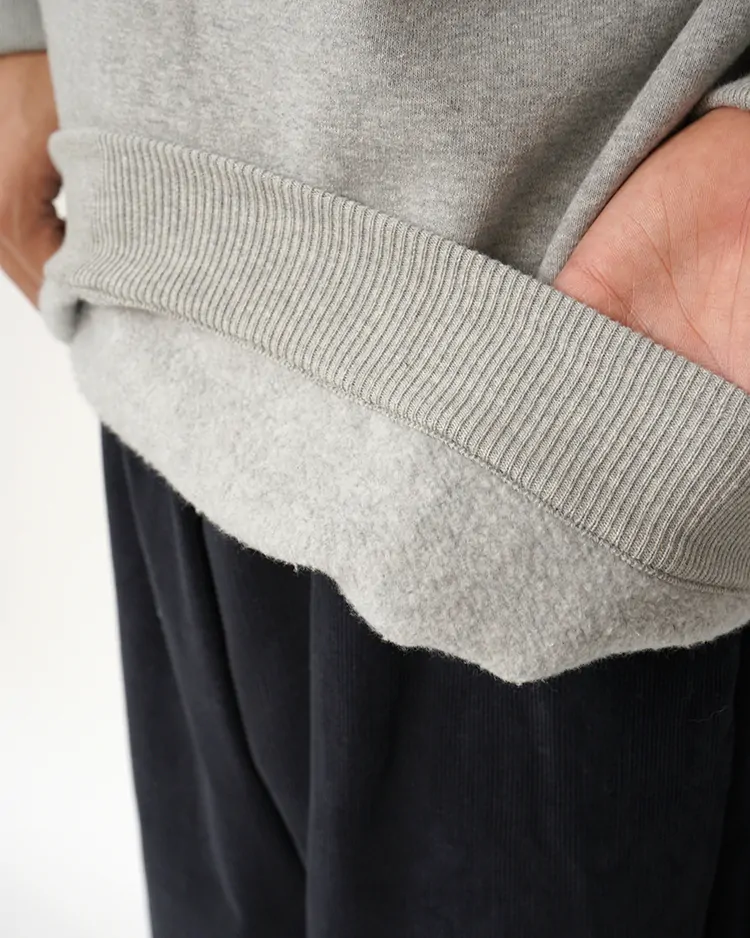 丁寧にゆっくりと織られたスウェット生地は、柔らかな着心地と暖かな肌触りが特徴です。リブと本体部の縫製は、生地の編み目と編み目を手作業で編み込む等、細部にまでこだわり抜いたアイテムです。