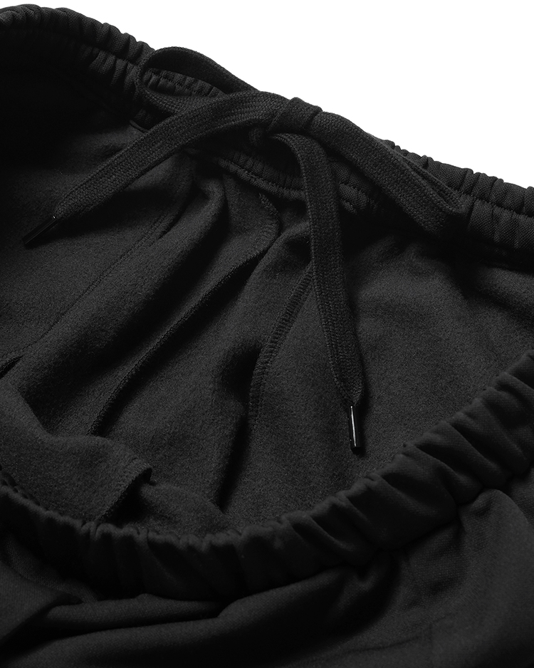 ウエストはゴム入りで調整可能な紐付き。もも周り・ヒップ周りにゆとりがあり、裏起毛になっています。