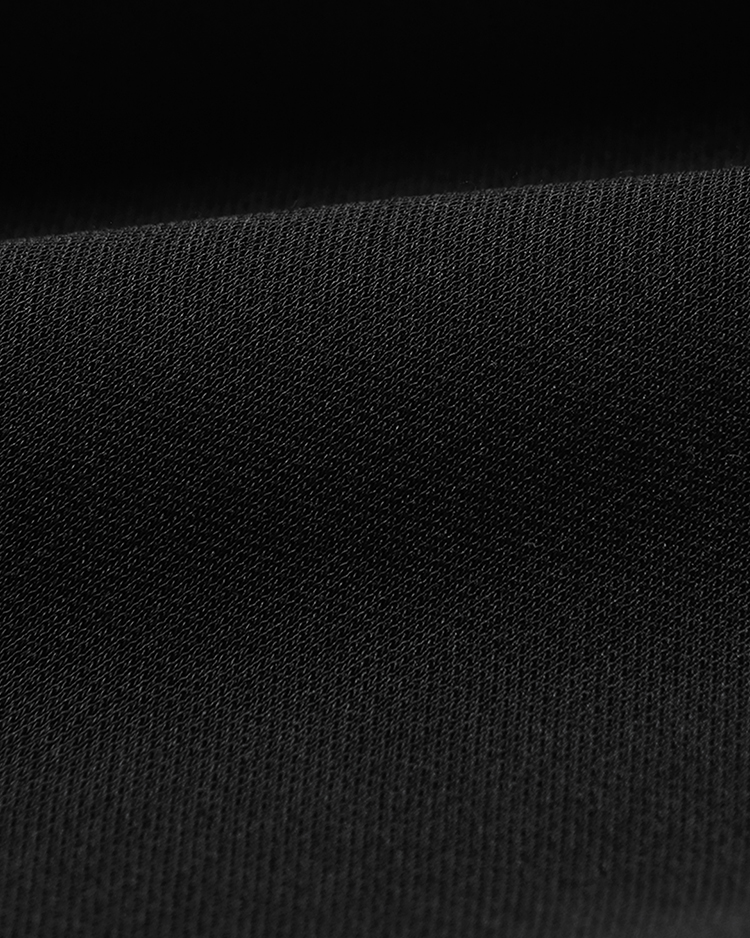 体操着などで採用されていた編機を使い、表面に強撚のポリエステル、裏面にスヴィンコットンを使用したダブルフェイスの生地で製作した商品。ジャージ素材でありながら美しい表面と滑らかな肌触りを実現し、ハリとつやのある仕上がりが特徴。