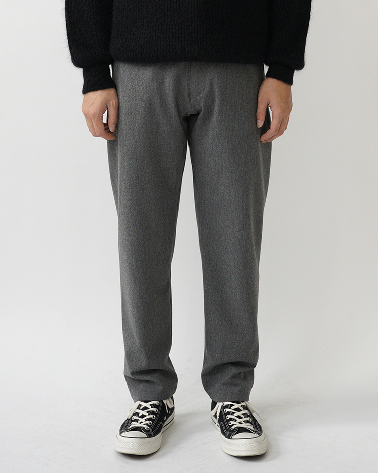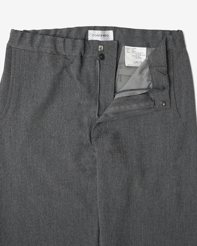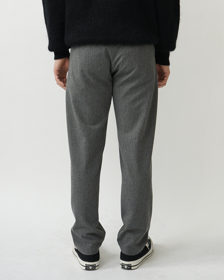 太ももにゆとりを持たせ、ウエストにドローコードを配したテーパードシルエットのイージースラックスです。