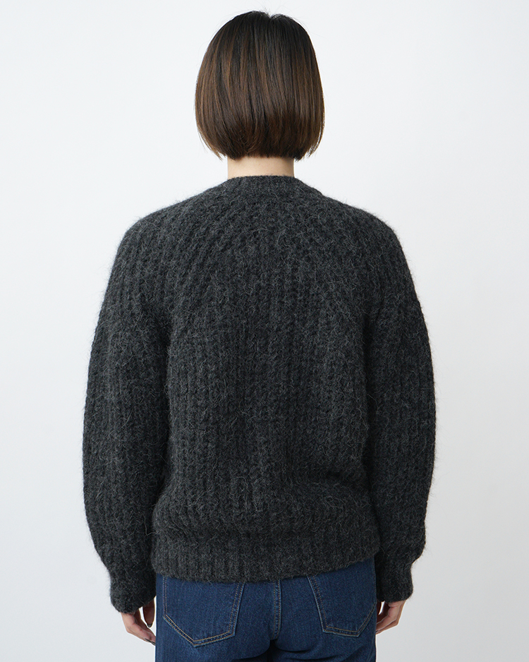 - CHUNKY FLUFFY SIGNATURE CREW CARDIGAN / MELANGE BLACK