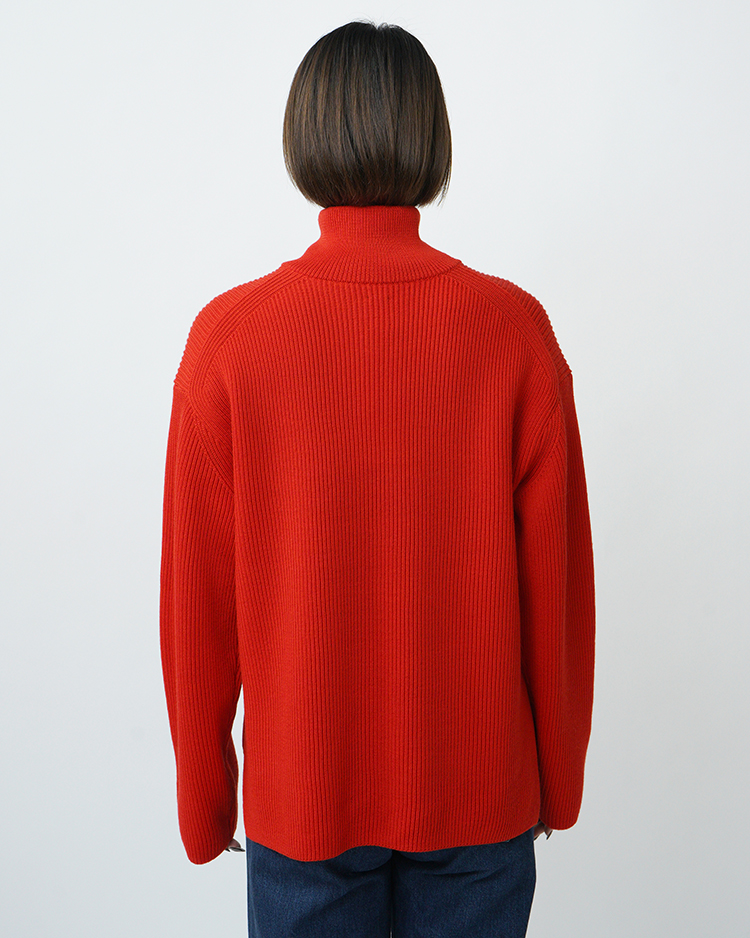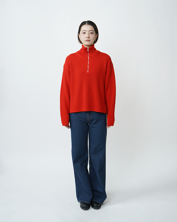 SOLID WOOL RIB HARF ZIP / VERMILION