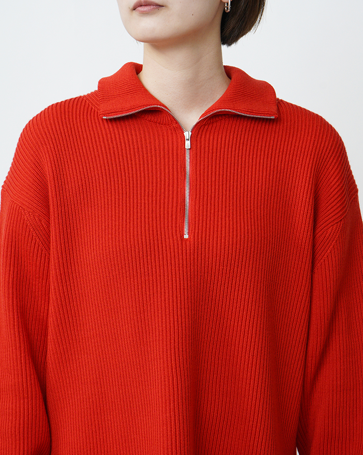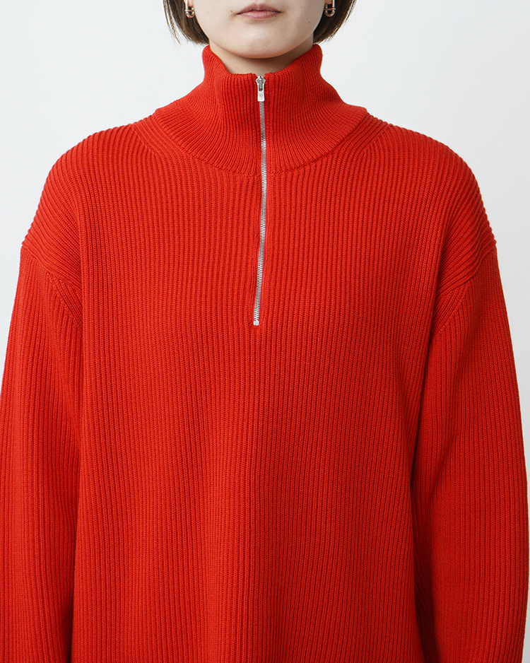 - SOLID WOOL RIB HARF ZIP / VERMILION