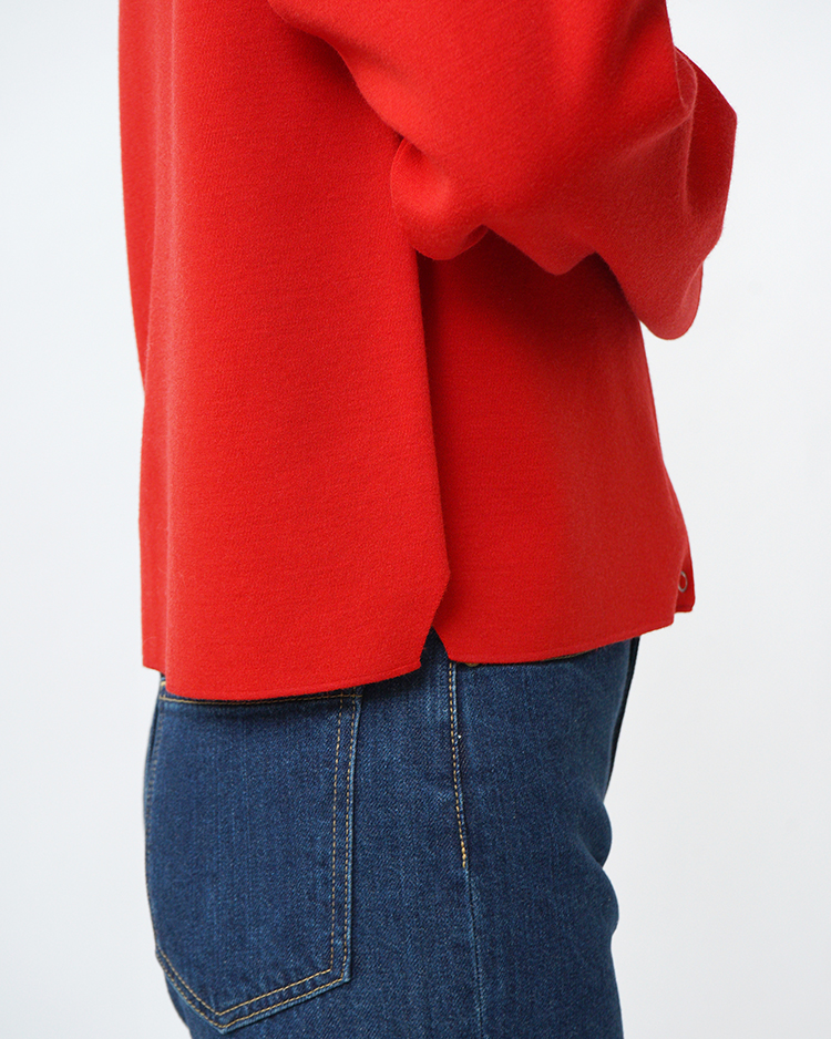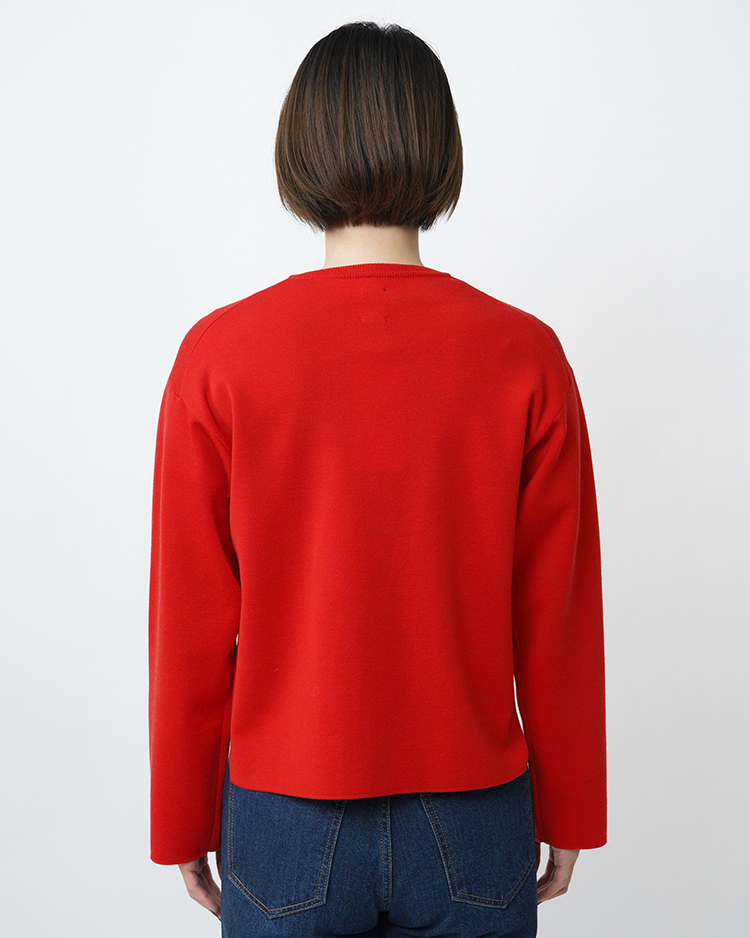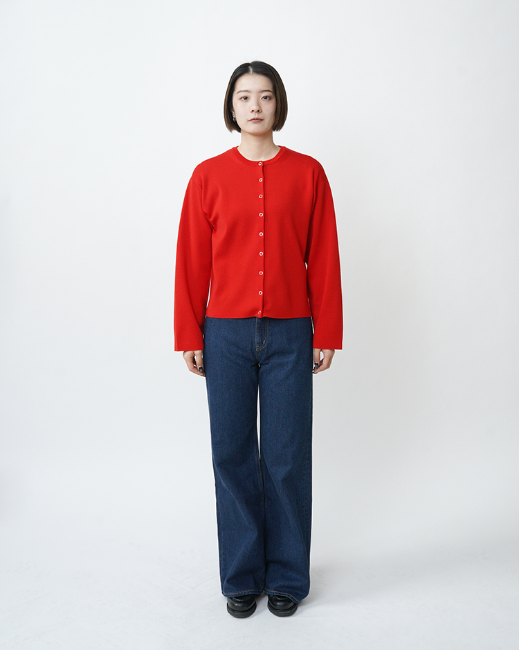 32G SMOOTH WOOL CREW SNAP CARDIGAN / VERMILION