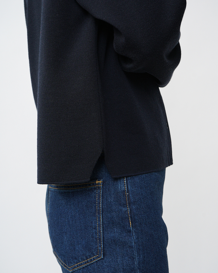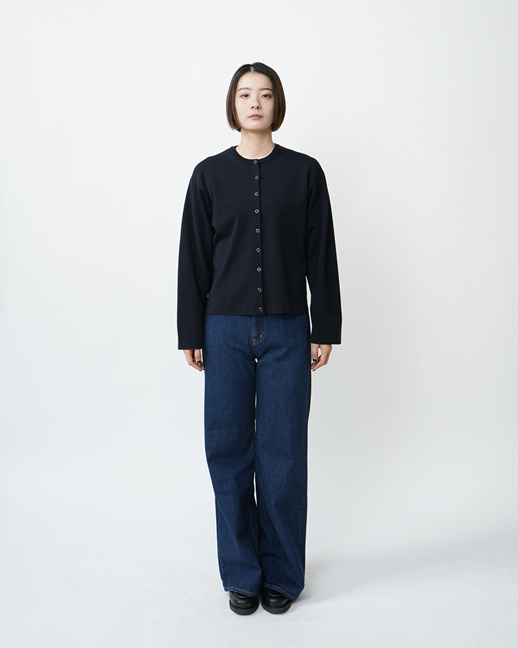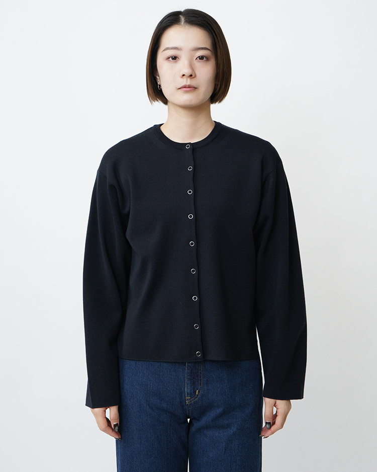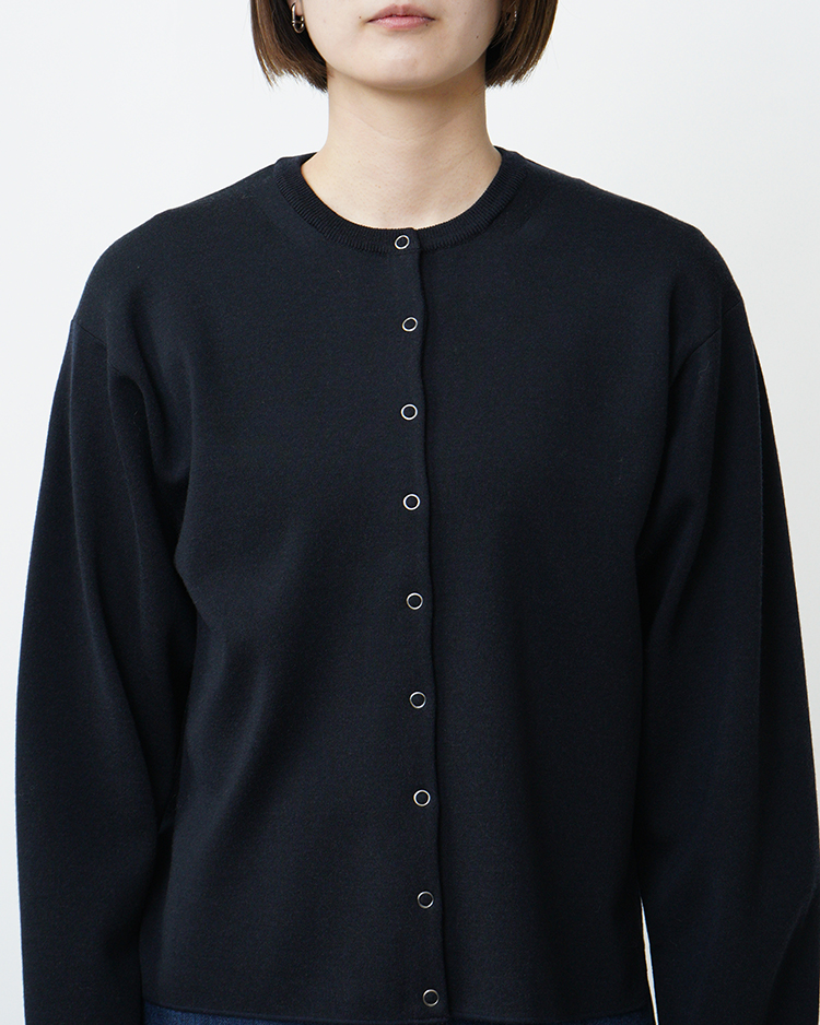 32G SMOOTH WOOL CREW SNAP CARDIGAN / NAVY