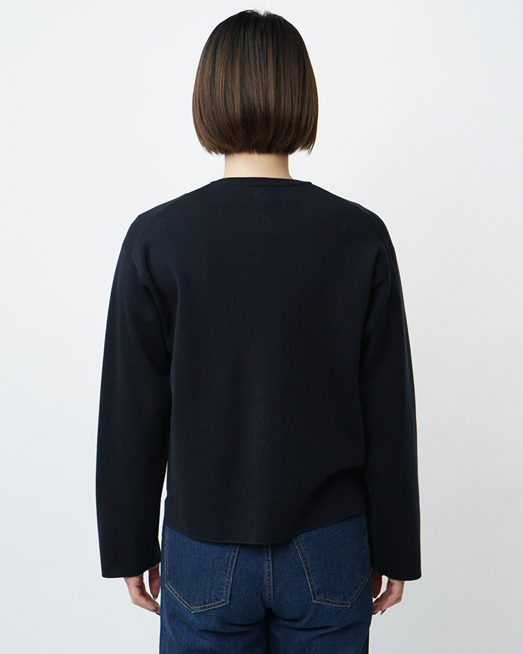 - 32G SMOOTH WOOL CREW SNAP CARDIGAN / NAVY