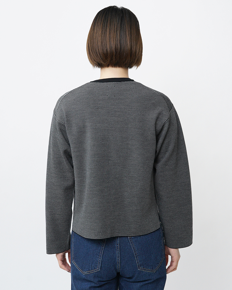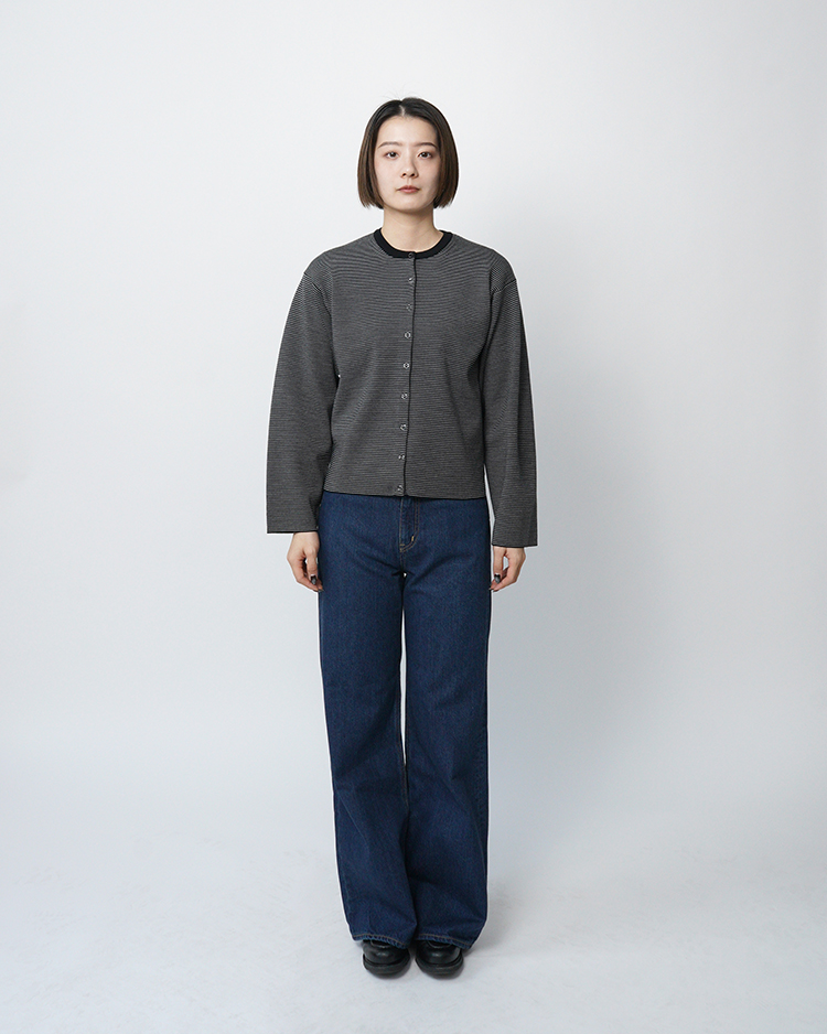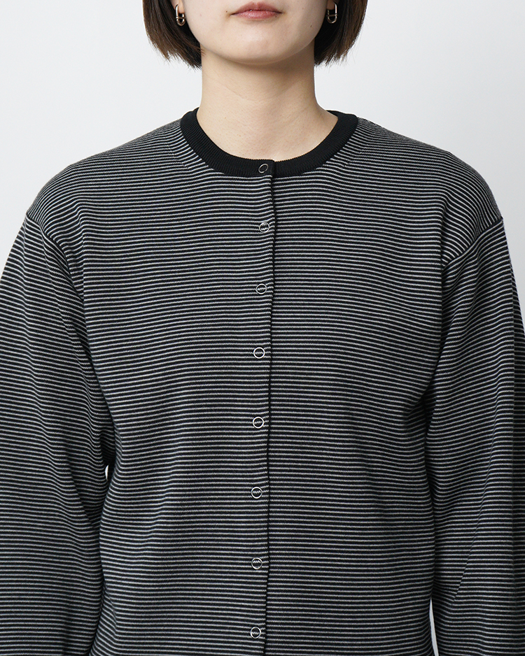 - 32G SMOOTH WOOL CREW SNAP CARDIGAN / BLACK × GRAY