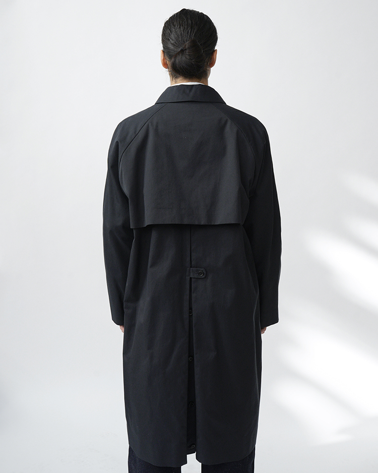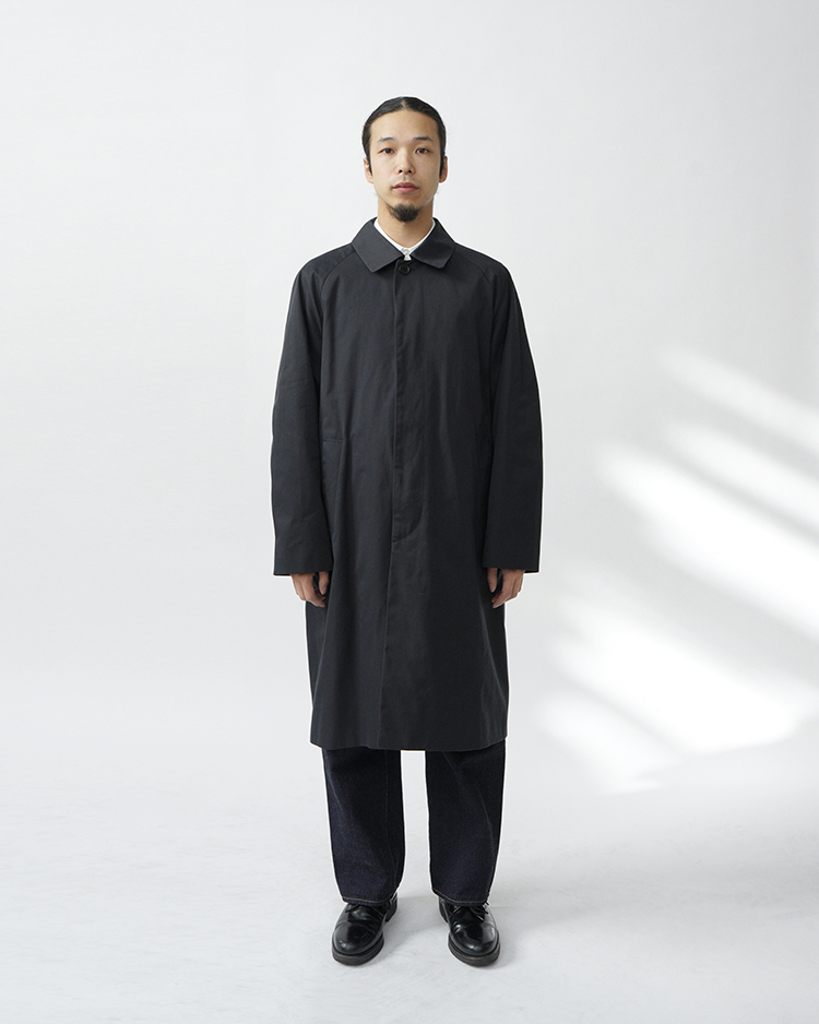 ラグランスリーブ仕様で身幅にゆとりを持たせたAラインシルエット。カジュアルからビジネスシーンまで幅広く対応する一着です。