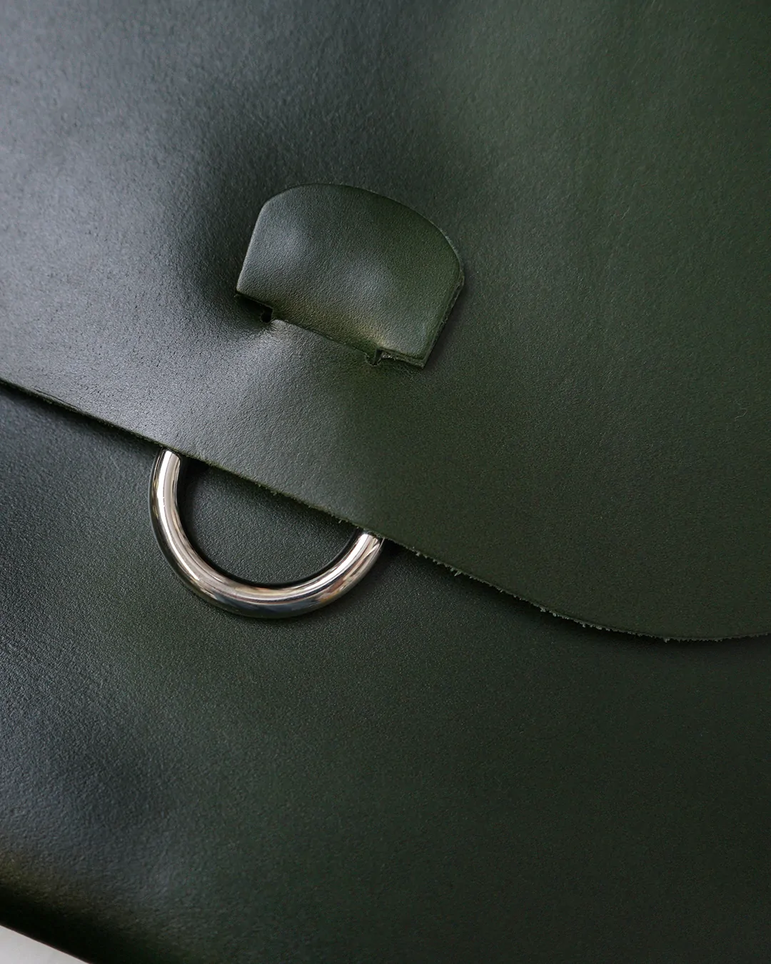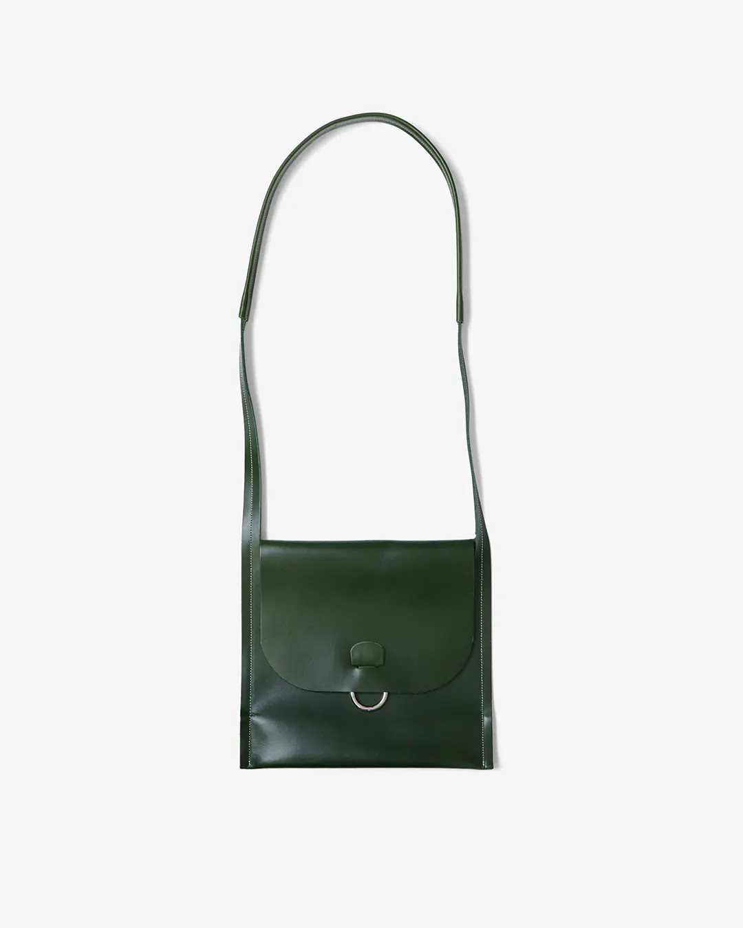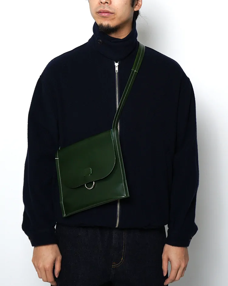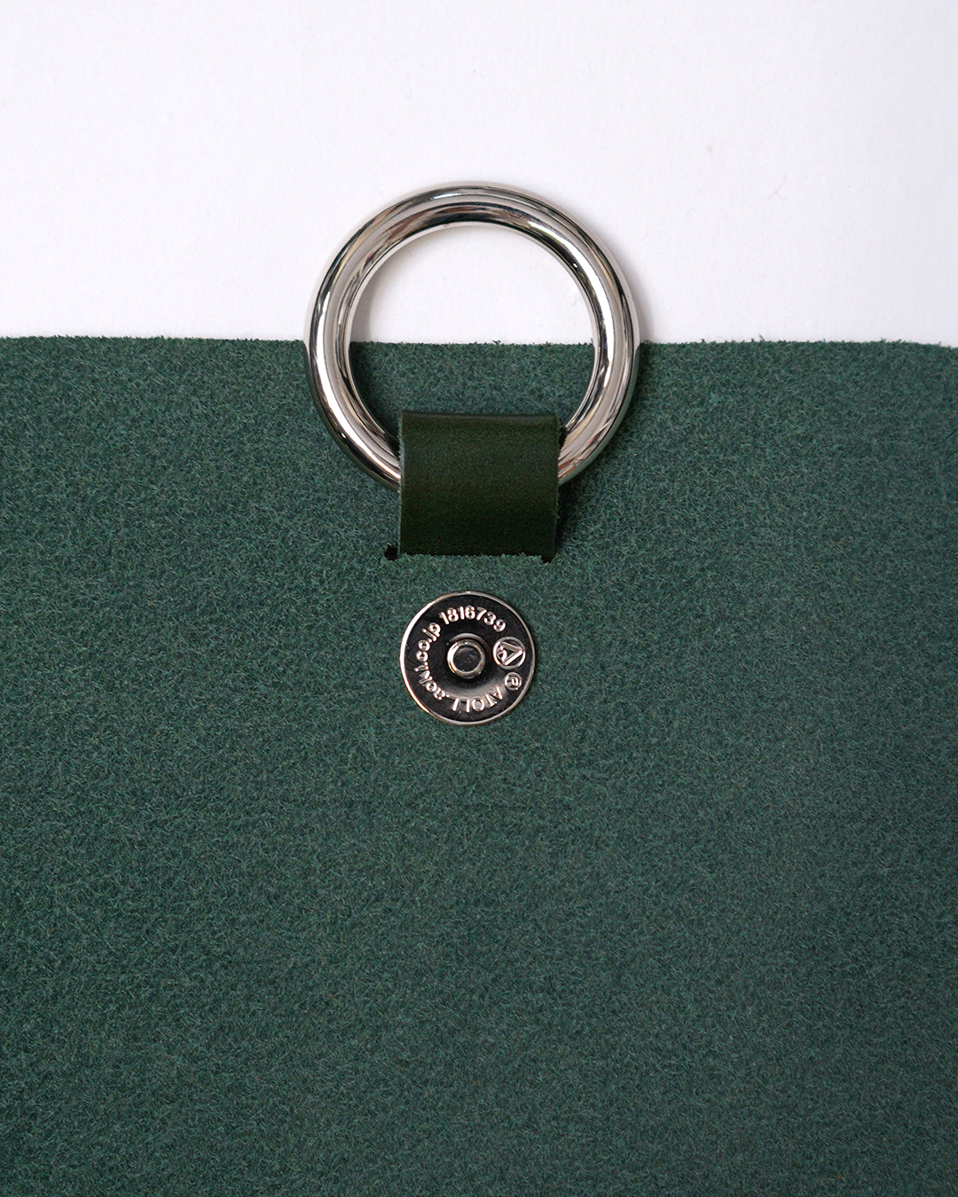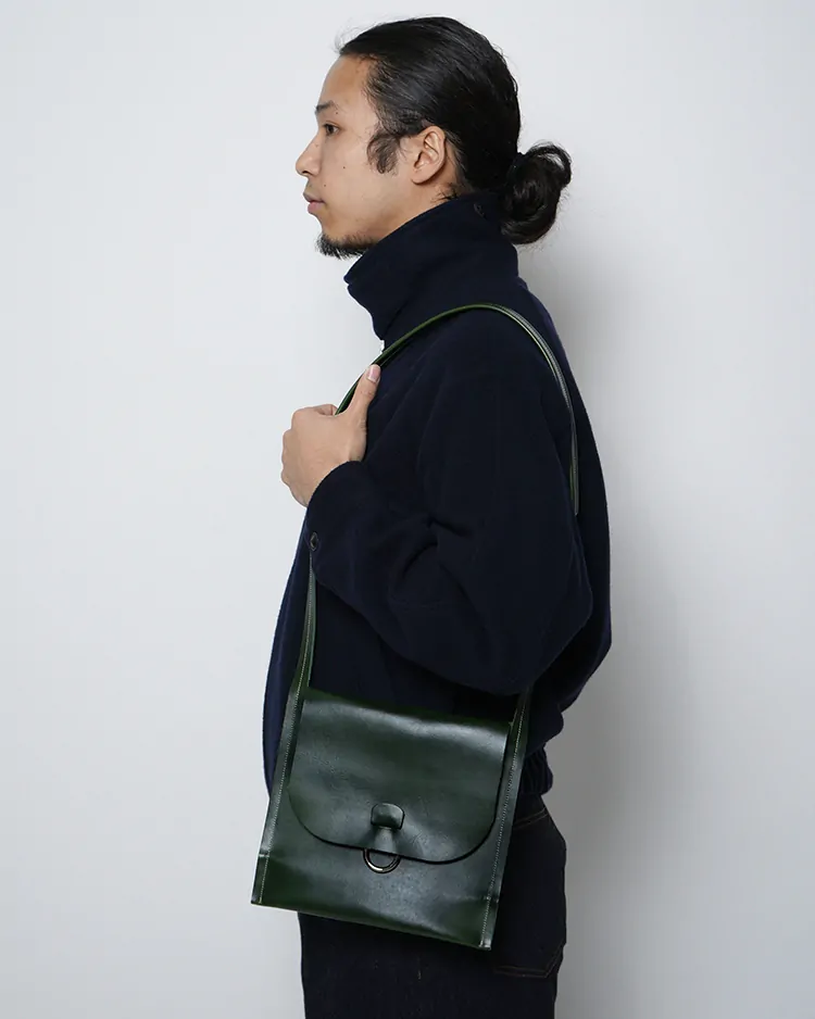 最小限の要素で構成されたシリーズで、一枚の革を折りたたんだ本体にホワイトステッチとリングがアクセントとして施されています。