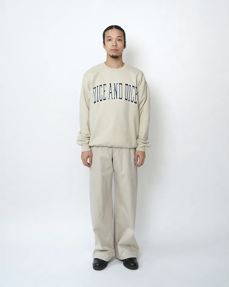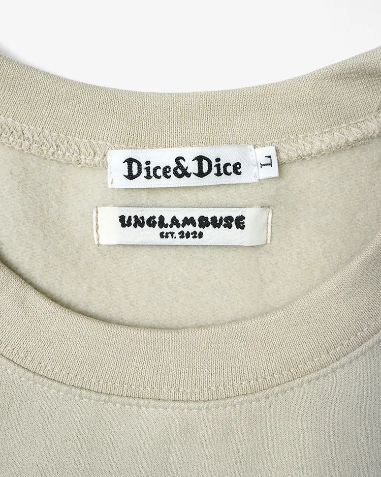 Dice&Diceの定番アイテムであるVersity Logo Crew Sweat。今回のイベントのために特別に製作された、エクスクルーシブなベージュカラーです。