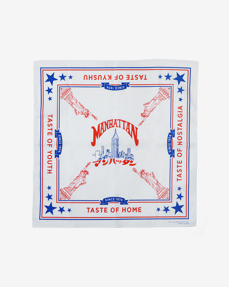 MANHATTANを愛してやまない松尾由貴がリョーユーパン公認のオフィシャルグッズを作りました。MANHATTANのパッケージをインスピレーションに、バンダナの4辺にファンの声をプリント。