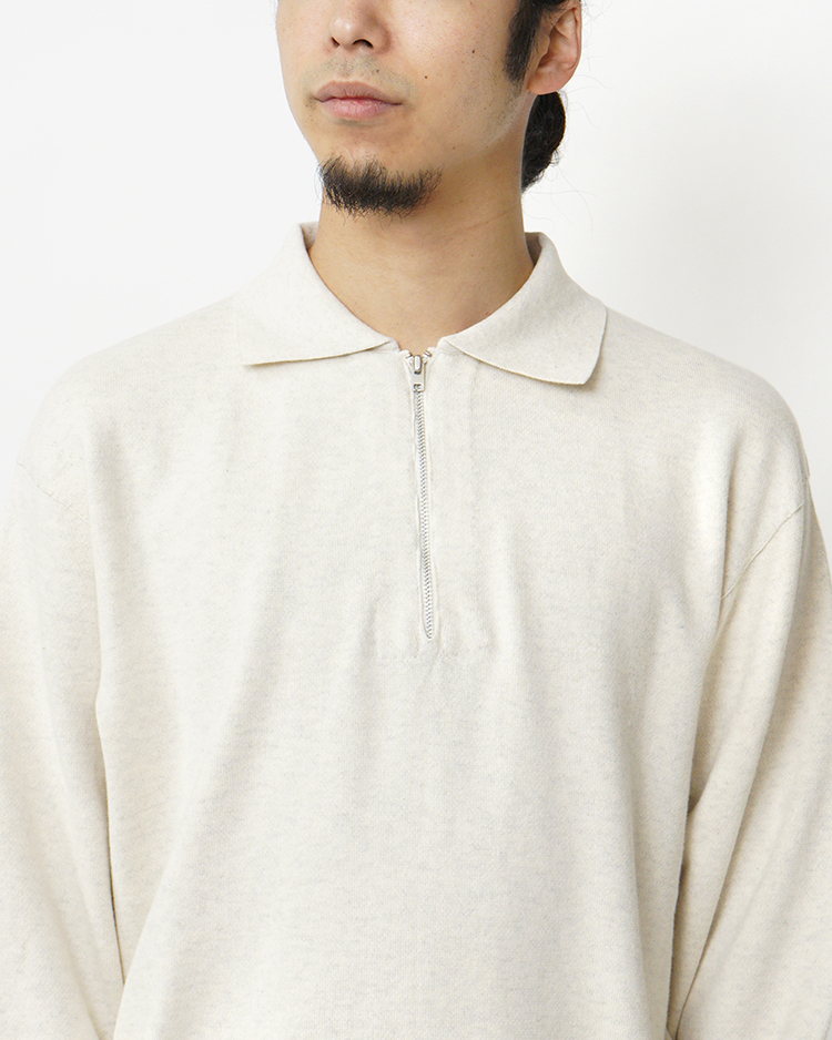 通年通して気持ちよく着れるように、コットンとナイロンの混紡糸で編み立てました。