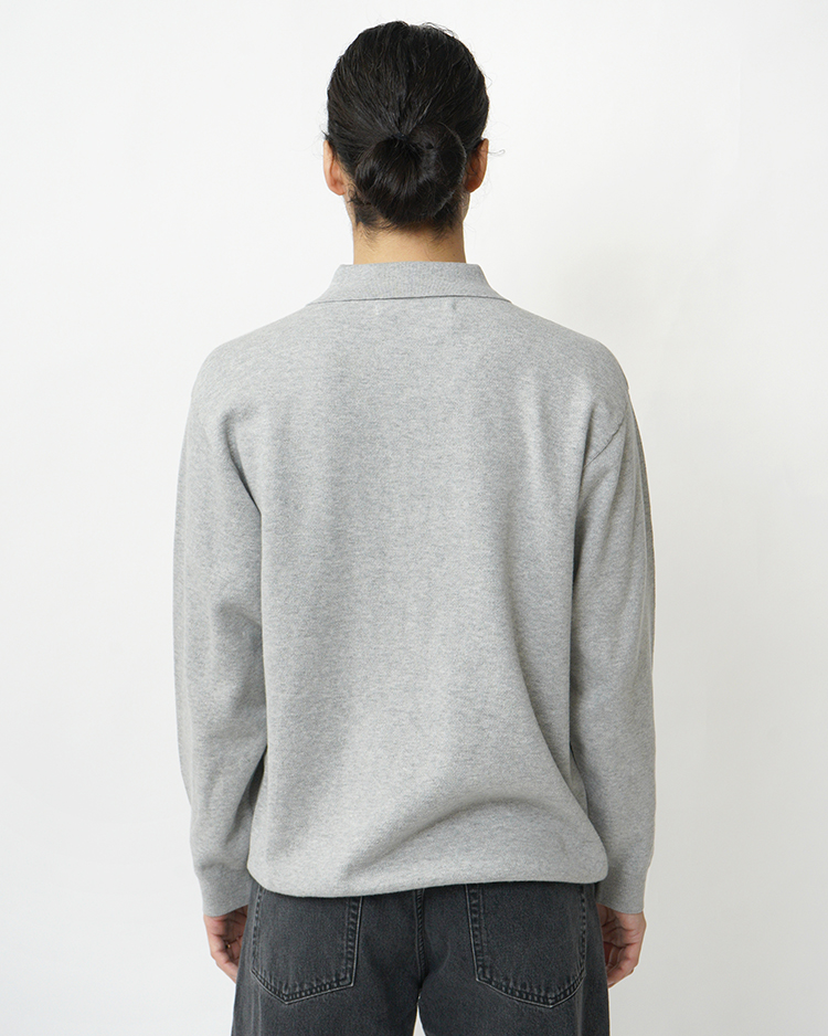 コットンにはクリンプと呼ばれる縮れがあって、その縮れがコットンの保温性を作っています。糸をつくる過程で失われてしまうことも多いのですが、綿が本来持っているあたたかさを保てるように、熟成された綿を使っています。ストレッチ性のあるナイロンで、その綿を包むように紡績することで、コシがありながらも、軽くて保温性のあるニットに仕上がりました。