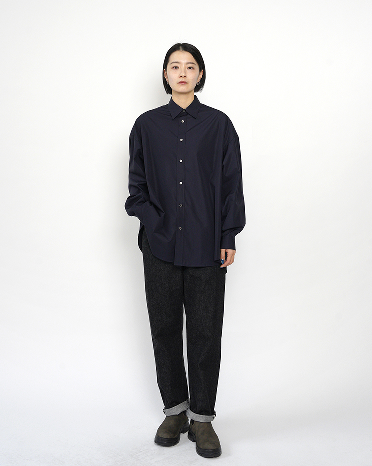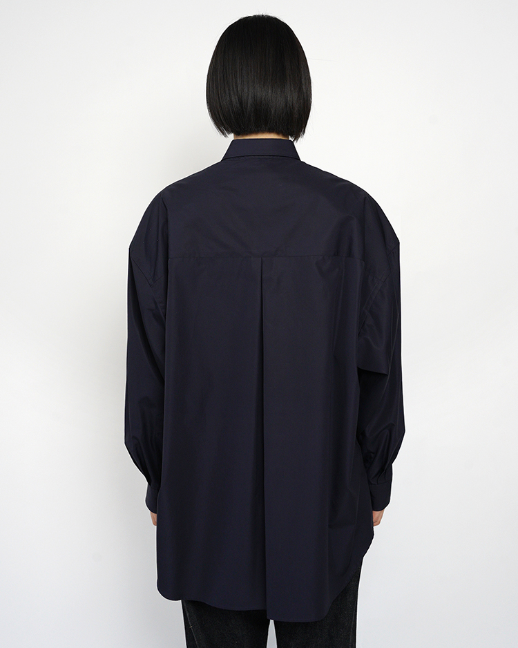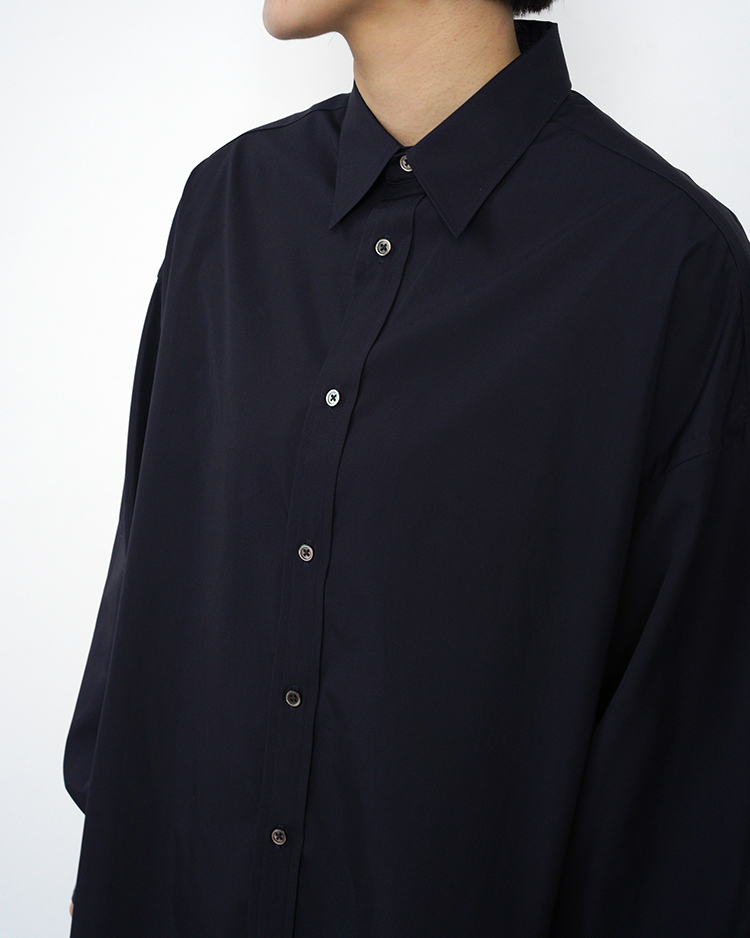 - High Count Broad L/S Oversized Regular Collar Shirt / NAVY