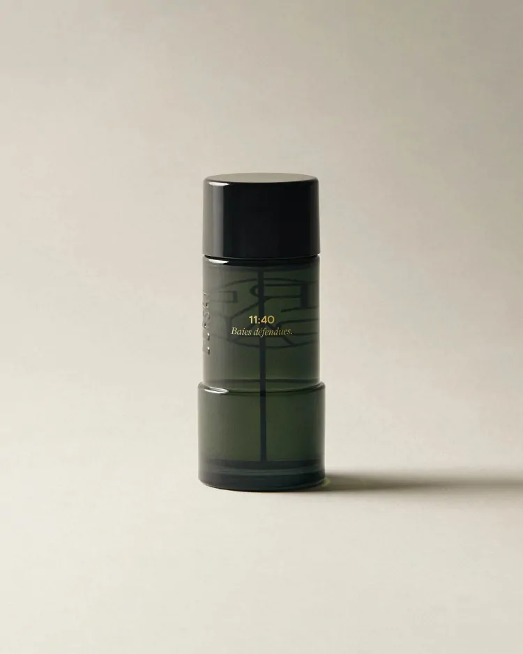 11:40 はグルマンといたずらっぽさの中間の香りです。 赤い果実の自然な甘さとカシスの酸味、そしてシダーとフランキンセンスのより刺 激的な個性を組み合わせました。 モスと松葉のノートが香りにインパクトを与え、アンブロクサンで輝きを添えます。