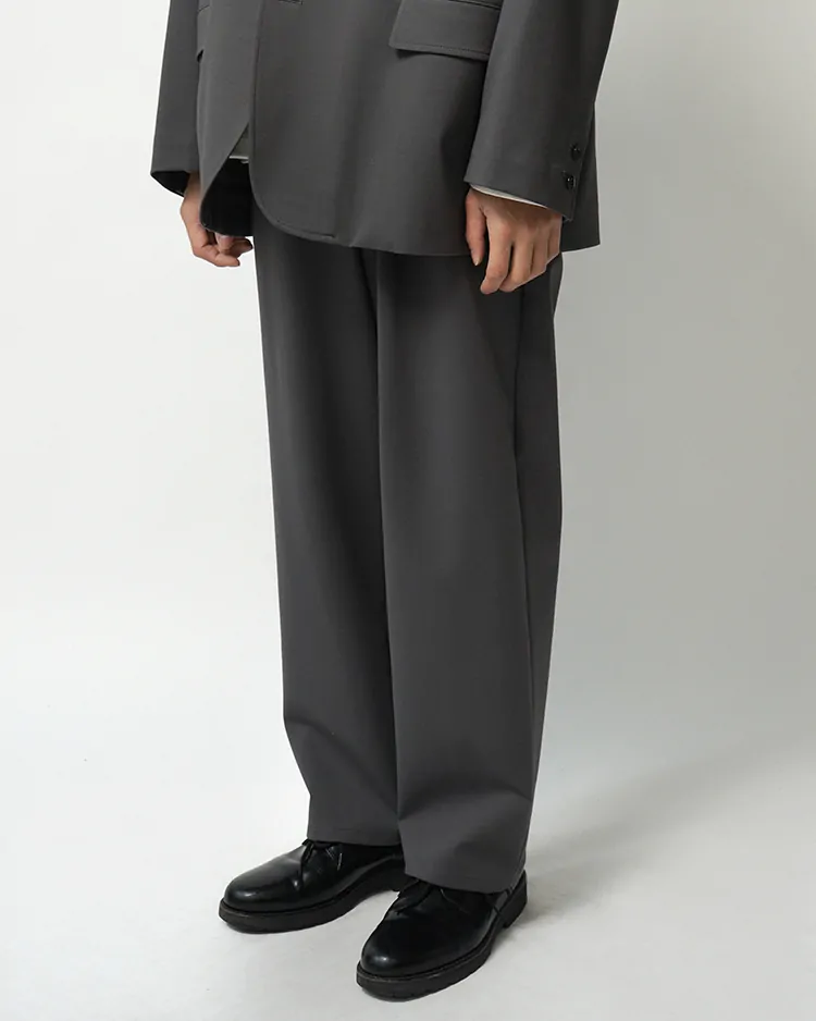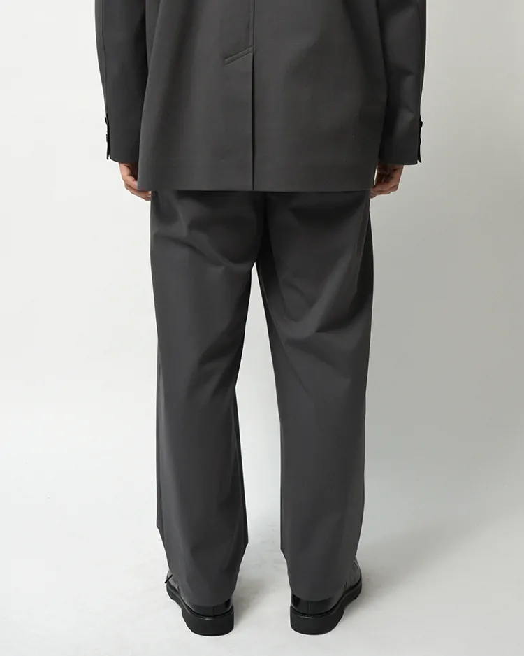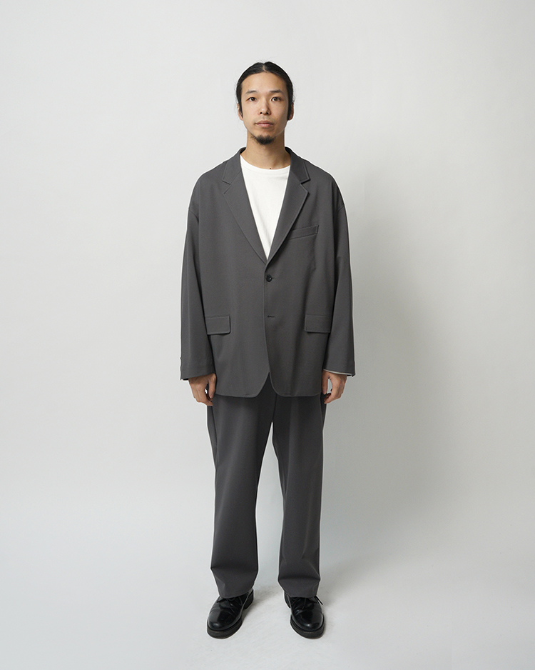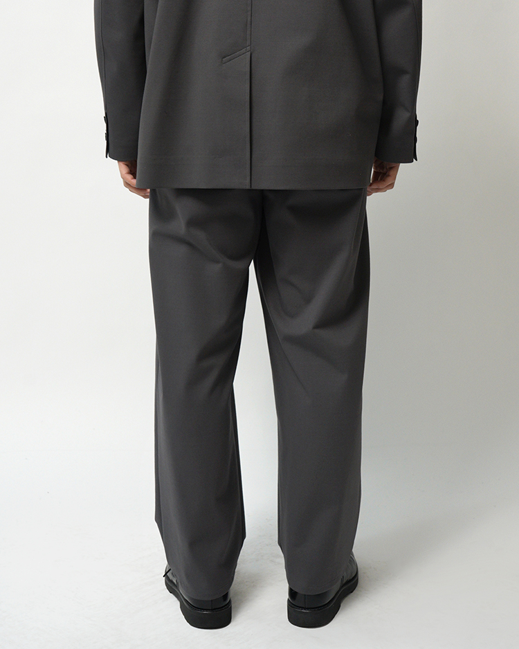 フランスのシェフパンツをべースにしたGraphpaper定番の裾幅を広げたワイドテーパードパンツ。ハイゲージの編機で製作し、布帛のように見えながら縦横にストレッチ性のあるオリジナルのポンチ素材は美しい光沢とハリ感が特徴です。