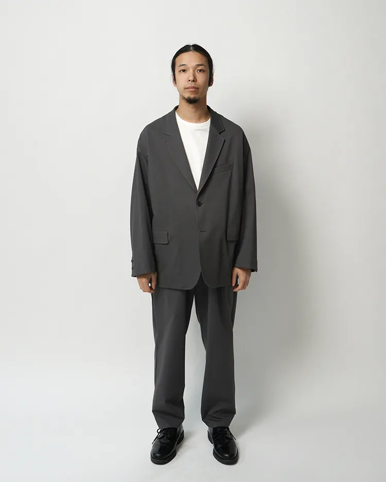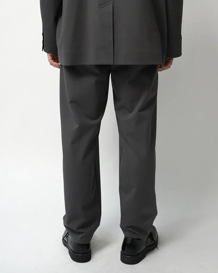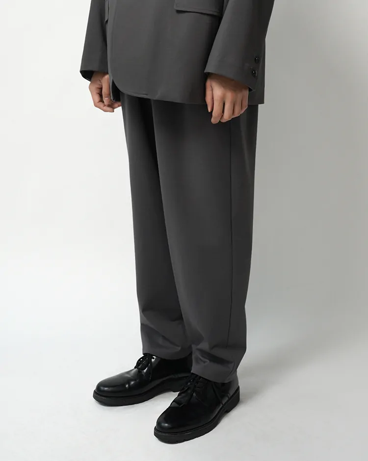 フランスのシェフパンツをべースにしたGraphpaper定番のパンツ。ウエストのサイズを簡単に調整できてシルエットもアレンジ可能。ハイゲージの編機で製作し、布帛のように見えながら縦横にストレッチ性のあるオリジナルのポンチ素材は美しい光沢とハリ感が特徴です。