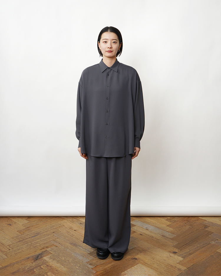 - Satin Oversized Regular Collor Shirt / C.GRAY