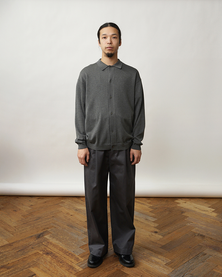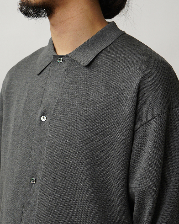 イタリアを拠点に世界中へ高品質な糸を供給するEmilcotoni社のスビンコットンを使用したロングスリーブニットシャツ。ボリュームのあるシルエットで、カーディガンのようにも着用が可能。糸本来が持つ上品な光沢と、豊富な油脂分によるなめらかな肌触りが魅力です。