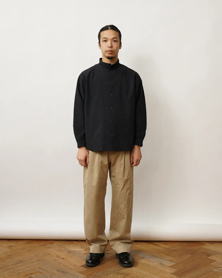 一般的なチノクロスのような単糸ではなく、双糸で、高密度に織り上げた生地を、スラックスを作る時のように、丁寧に仕立てました。