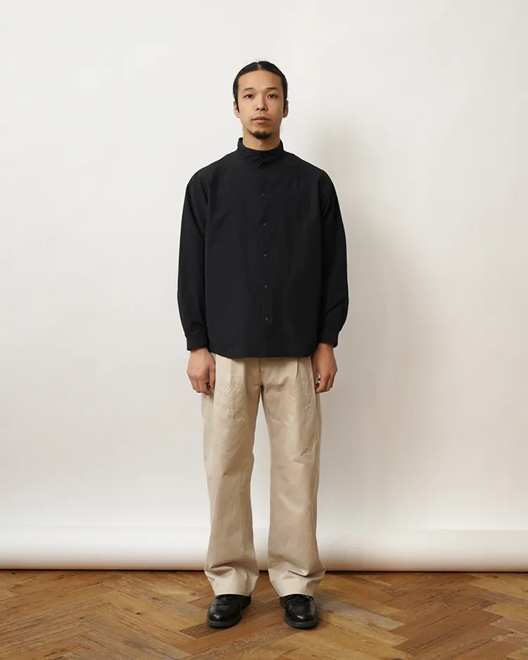 一般的なチノクロスのような単糸ではなく、双糸で、高密度に織り上げた生地を、スラックスを作る時のように、丁寧に仕立てました。