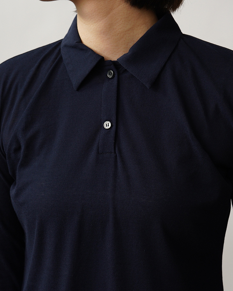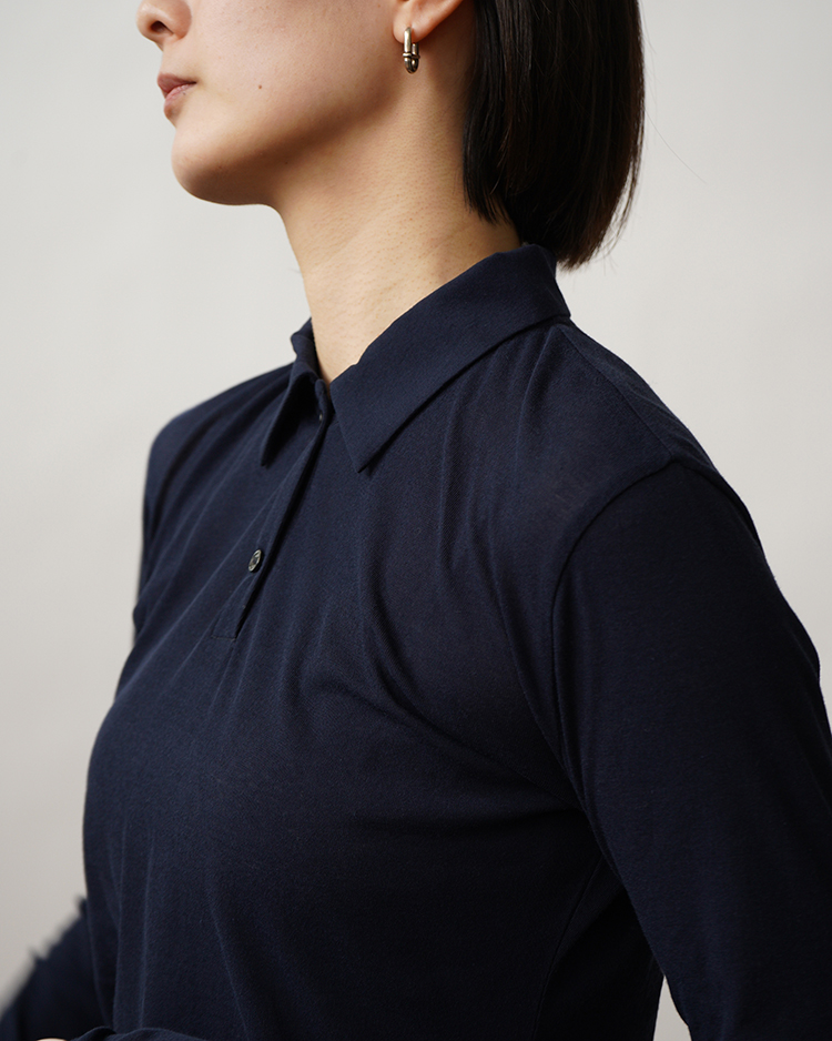 軽やかなコットンシアー素材を使用したロングスリーブポロシャツ。