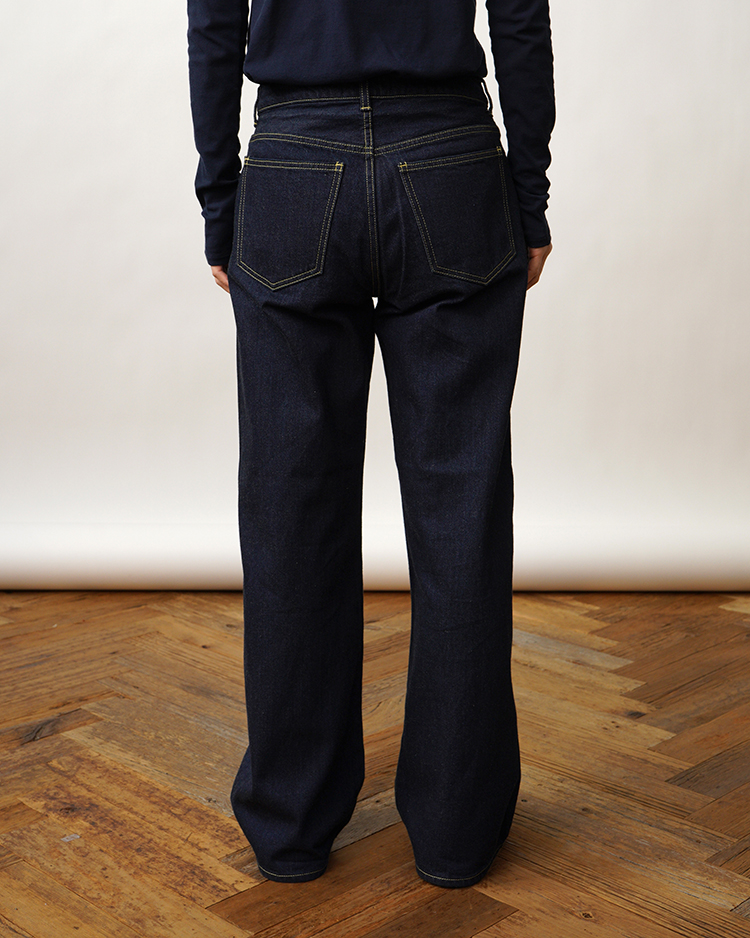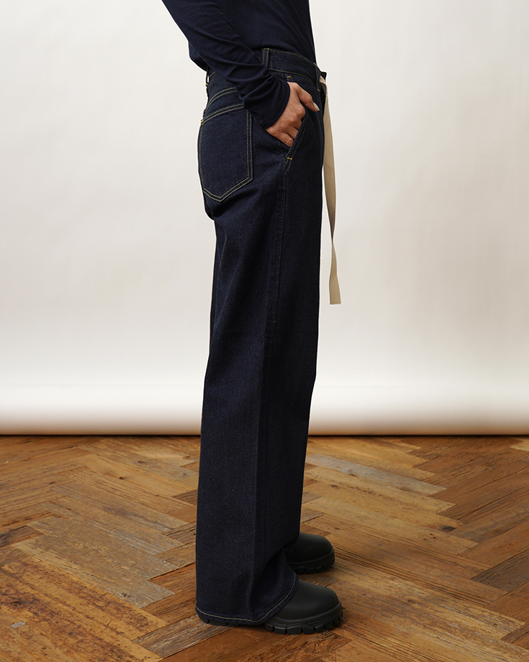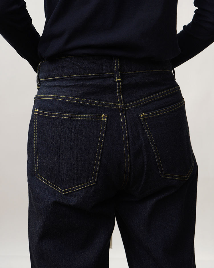 程よくワイドなレッグラインと、深みのあるインディゴで幅広いスタイリングに対応します。
