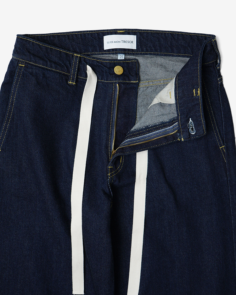 ウエストにドローストリング(紐)を配した、イージー仕様のデニムパンツです。