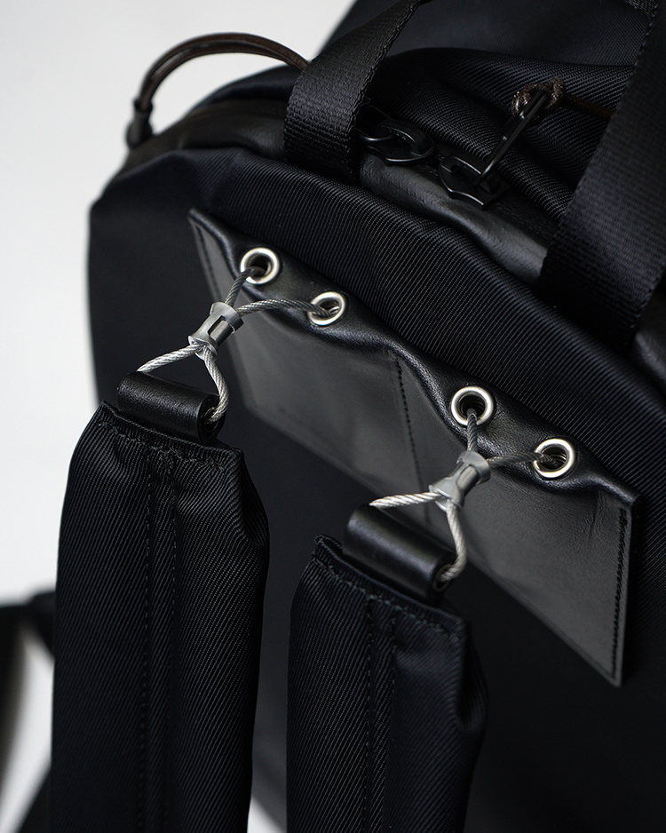 撥水性と耐久性に優れた厚手のナイロンツイルを使用。