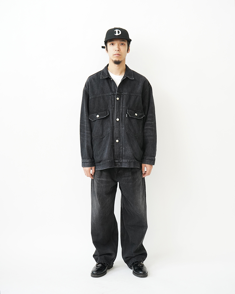 130年もの歴史を誇る米国Cone Denim社が作る13.75オンスのセルビッチデニム。ウエストにはタックが入り、ヒップからワタリにかけて適度な余裕があるワイドストレートパンツ。旧式力織機でゆっくりと織り上げることで生まれる、生地表面のざらっとした凹凸やムラがデニム本来の風合いを感じさせる魅力的な素材。ダークフェイドはメリハリのある濃淡が特徴です。