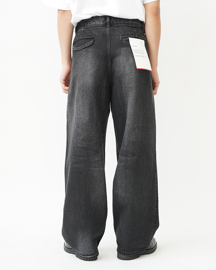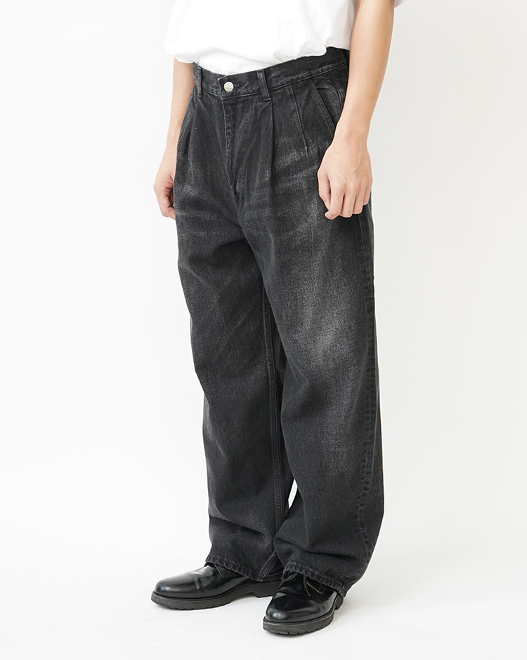 - Selvage Denim Two Tuck Pants / BLACK DARK FADE