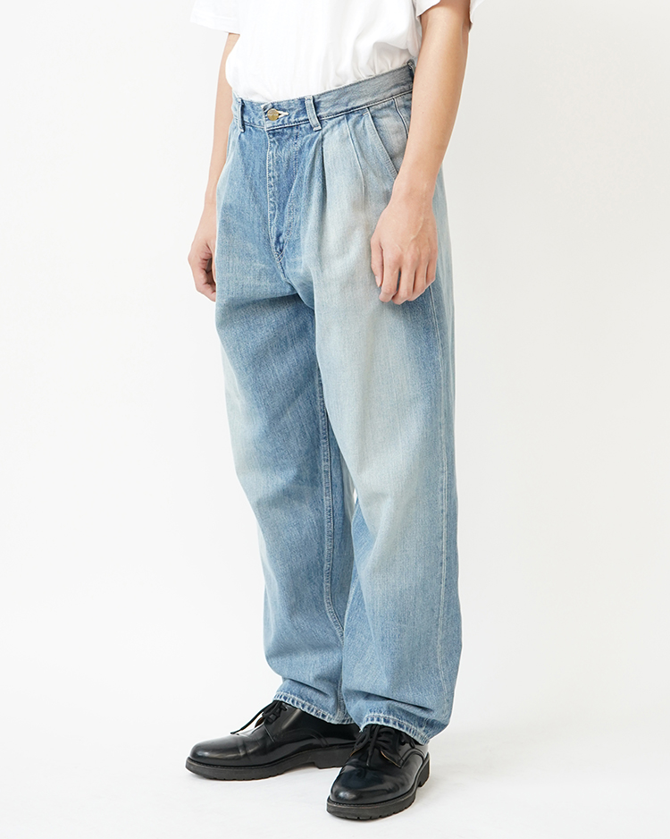 - Selvage Denim Two Tuck Tapered Pants / INDIGO LIGHT FADE