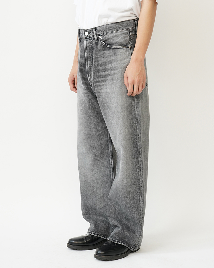 Selvage Denim Five Pocket Wide Straight Pants / BLACK LIGHT FADE