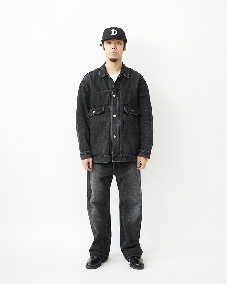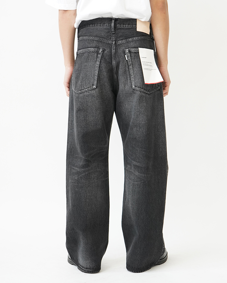 - Selvage Denim Five Pocket Wide Straight Pants / BLACK DARK FADE