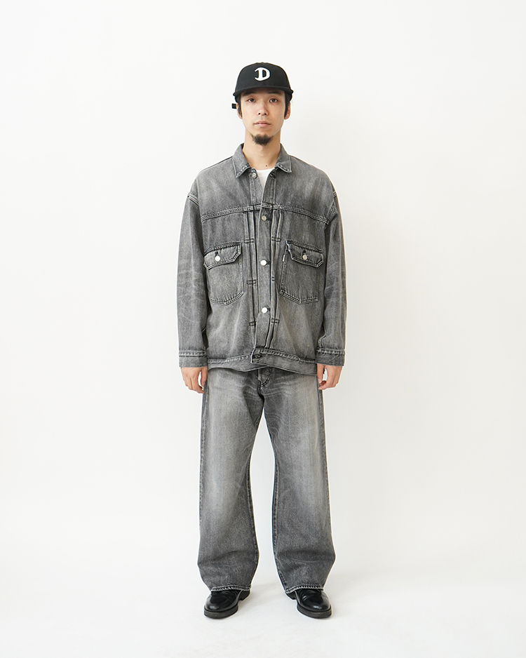 130 年もの歴史を誇る米国 Cone Denim 社が作る13.75 オンスのセルビッチデニム。旧式力織機でゆっくりと織り上げることで生まれる、生地表面のざらっとした凹凸やムラがデニム本来の風合いを感じさせる魅力的な素材。’ 50 年代に誕生した往 年のデニムジャケットのディテールを継承しながらも立体的にボリュームのあるシルエットを構築。ロゴの刻印入りのタックボタンを配し、クリーンなヌメ革のパッチが襟ぐりを飾る。長く使い込まれたような淡い色合いが特徴のライトフェイド。