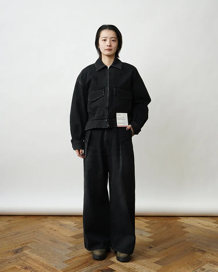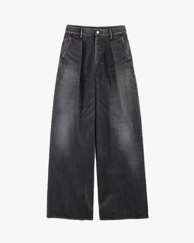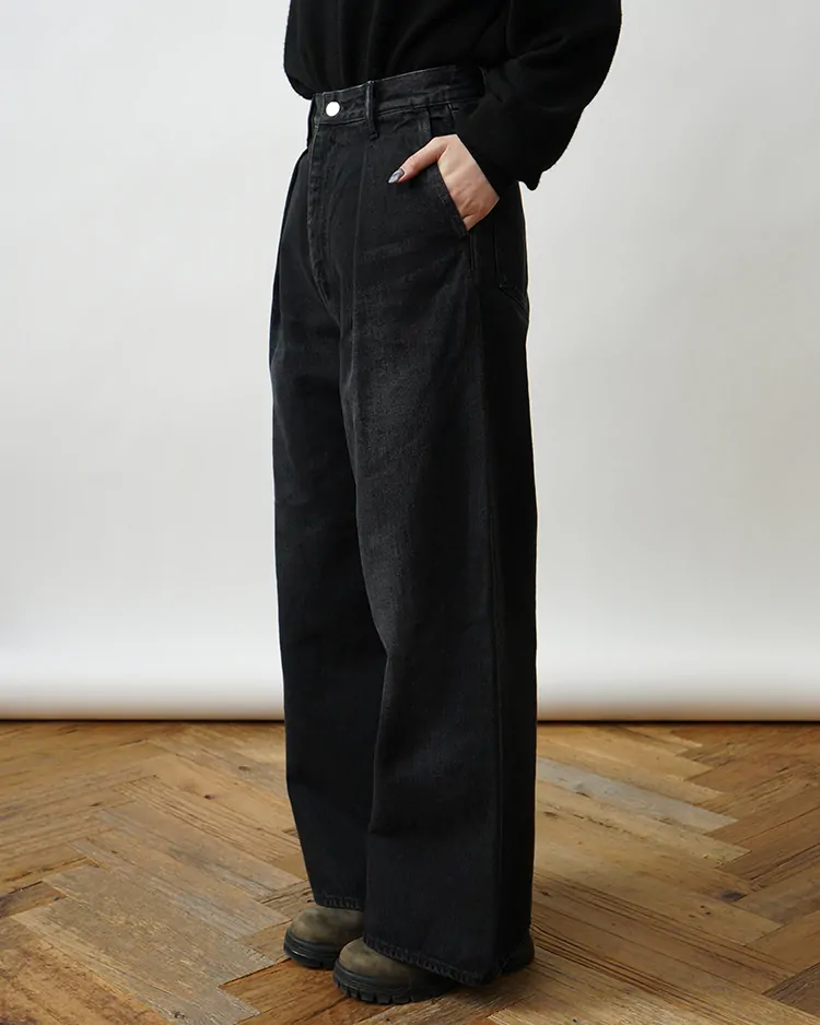 Selvage Denim Two Tuck Wide Pants / BLACK DARK FADE