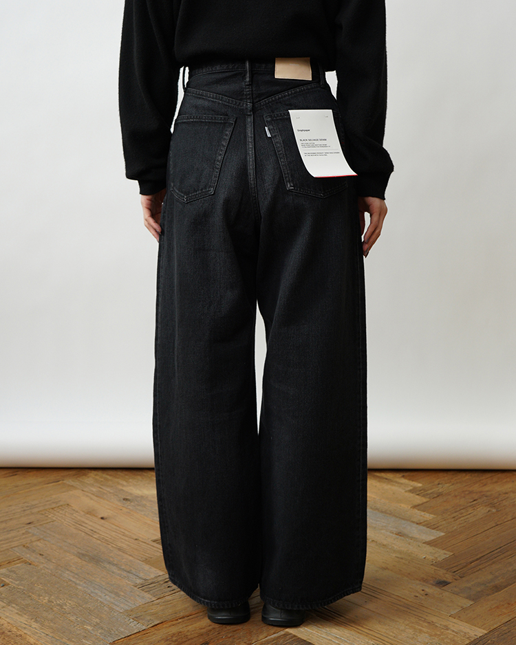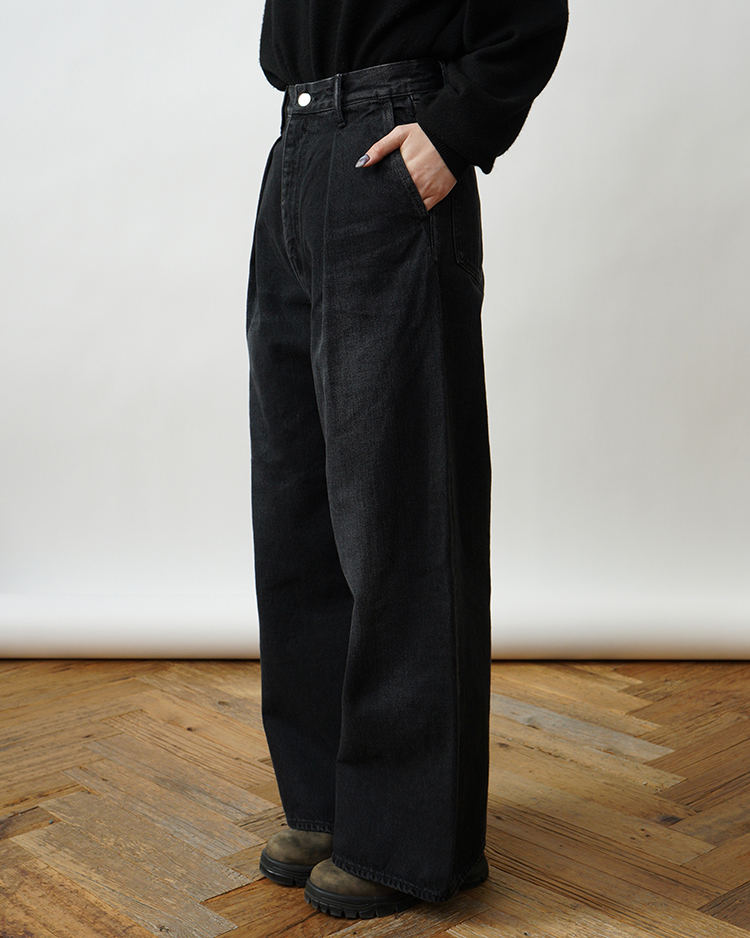 - Selvage Denim Two Tuck Wide Pants / BLACK DARK FADE