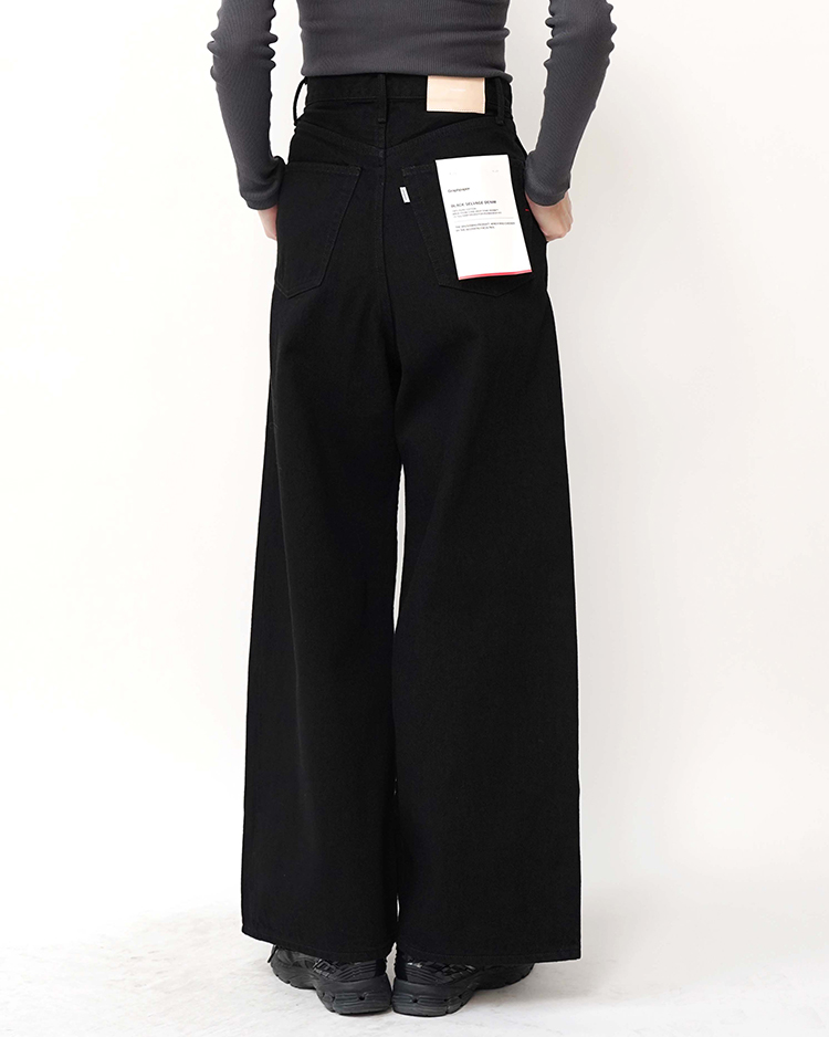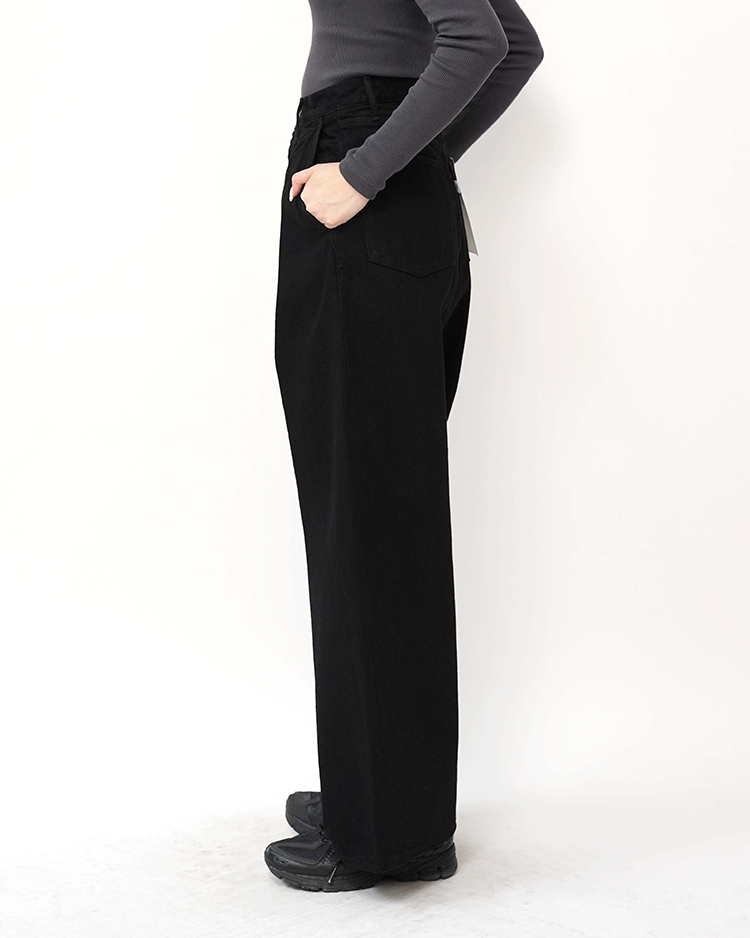 - Selvage Denim Two Tuck Wide Pants / BLACK WASHED